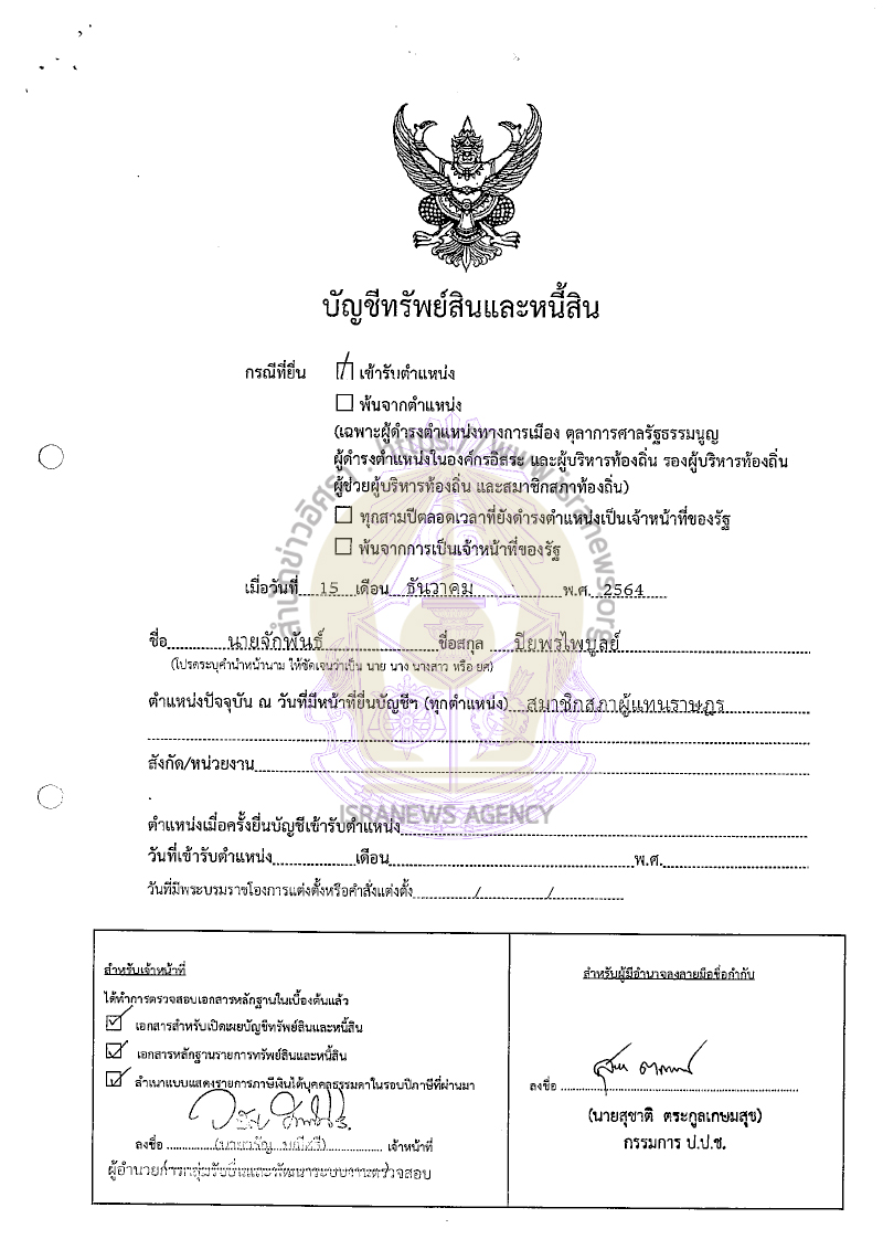 ป.ป.ช. เปิดเผยรายการรายได้ของนายจักรพันธ์ 2 ชุด