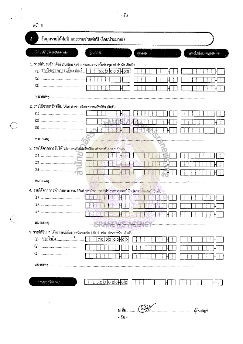 ชุดแรกแจ้งมีรายได้ต่อปี 1,100,000 บาท จากรายได้จากการเลี้ยงสัตว์ 600,000 บาท รายได้จากการขายไข่ 500,000 บาท
