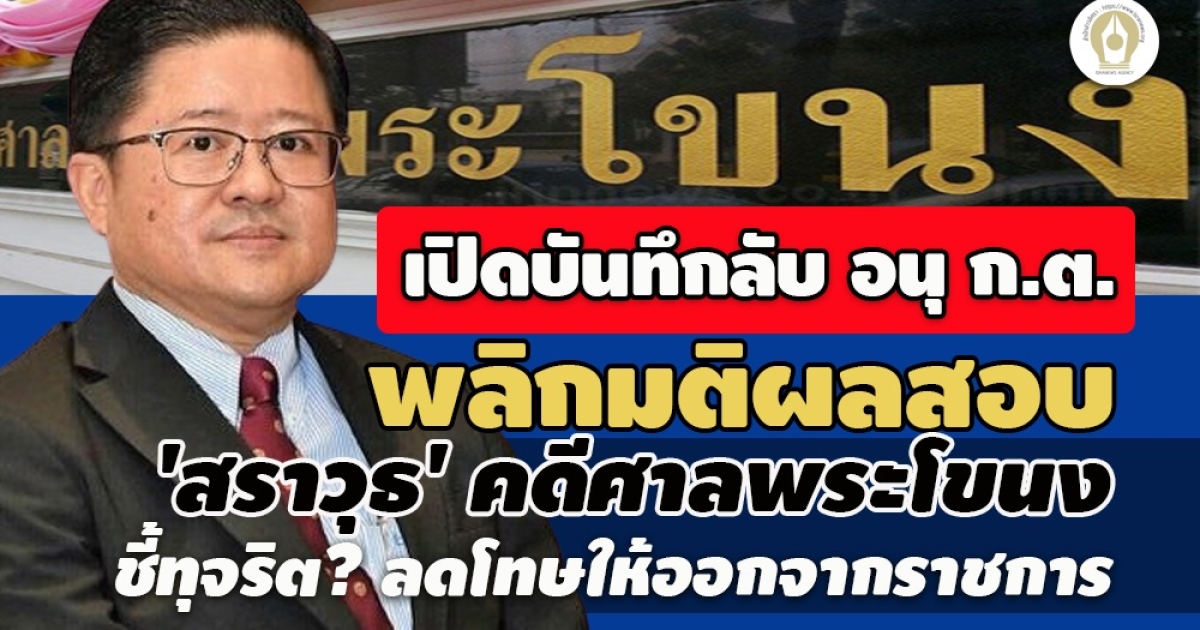 - ให้รอผลสอบวินัยร้ายแรงก่อน! มติ ก.ต. 8 ต่อ 7 ไม่พักราชการ 'สราวุธ' คดีศาลพระโขนง