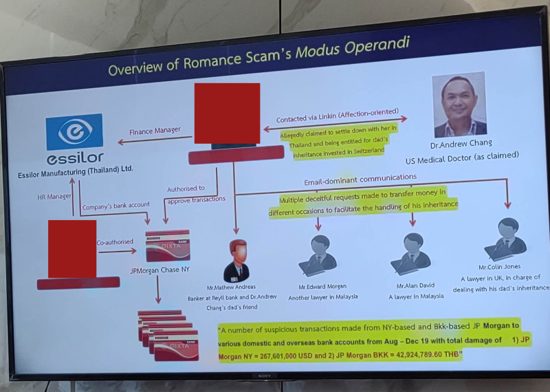 - ขยี้คดีโกง 6 พันล. (1) : ใช้รูปคนมาเลฯ อ้าง 'นพ.' หลอก CFO หญิงให้รักลวงโอนเงินมหาศาล