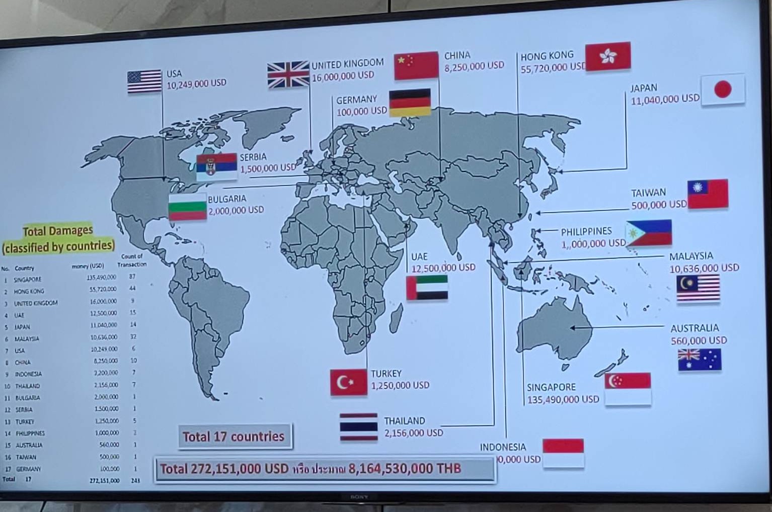 เครือข่ายการโอนเงินในคดีที่เกี่ยวข้องใน 17 ประเทศ ซึ่งความเสียหายอาจจะถึง 8.1 พันล้านบาท