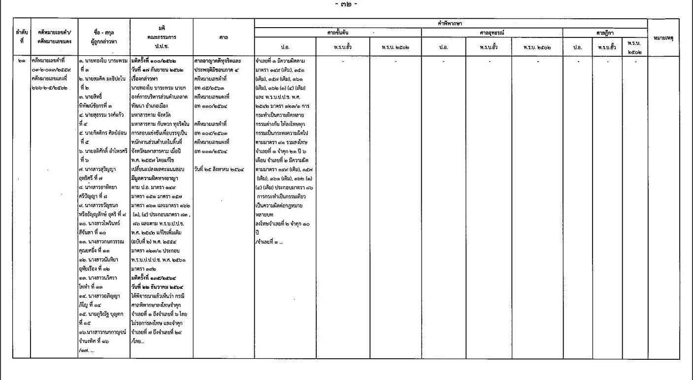 โทษจำคุกจำเลยที่ 7 ถึง จำเลยที่ 29 ไห้รอการลงโทษ ไว้มีกำหนด 2 ปี ตามมาตรา 56 ไม่ชำระค่าปรับให้จัดการตามมาตรา 29, 30
