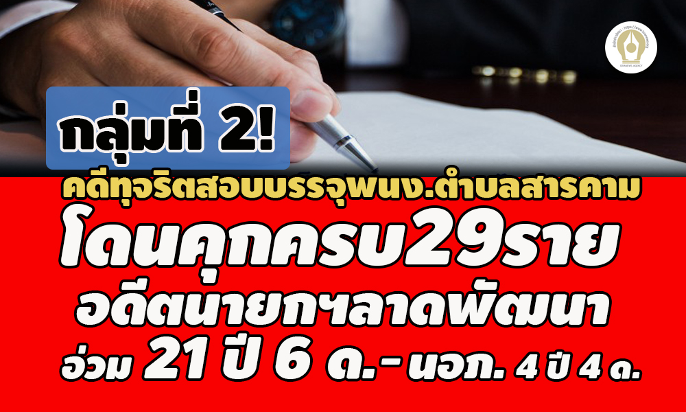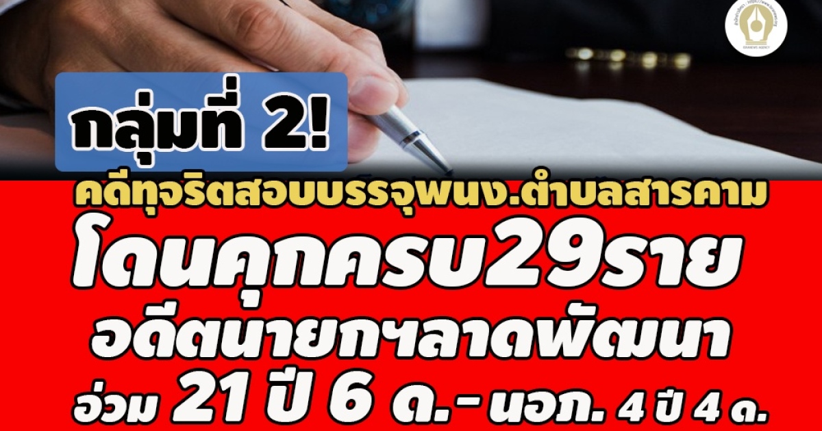 "...กรณีการทุจริตคดีนี้ ในส่วนของ นายทองใบ บาระพรม อดีตนายกองค์การบริหารส่วนตำบล (อบต.) ลาดพัฒนา อำเภอเมืองมหาสารคาม จังหวัดมหาสารคาม และพวก จำนวน 28 ราย ก็ถูกศาลตัดสินลงโทษไปแล้วเช่นกัน โดยจำเลยคนสำคัญในคดีส่วนนี้ อาทิ นายทองใบ บาระพรม อดีตนายก อบต. ลาดพัฒนา ถูกศาลตัดสินลงโทษจำคุกเป็นเวลา 21 ปี 6 เดือน , นายสมคิด มะธิปะโน จำเลยที่ 2 ครูชำนาญการพิเศษ โรงเรียนแก่งนาจารย์พิทยาคม จ.กาฬสินธุ์ จำคุก 10 ปี , นายสิทธิ์ พิพัฒน์ชัยกร อดีตนายอำเภอเมืองมหาสารคาม ถูกศาลตัดสินลงโทษจำคุกเป็นเวลา 4 ปี 4 เดือน..."