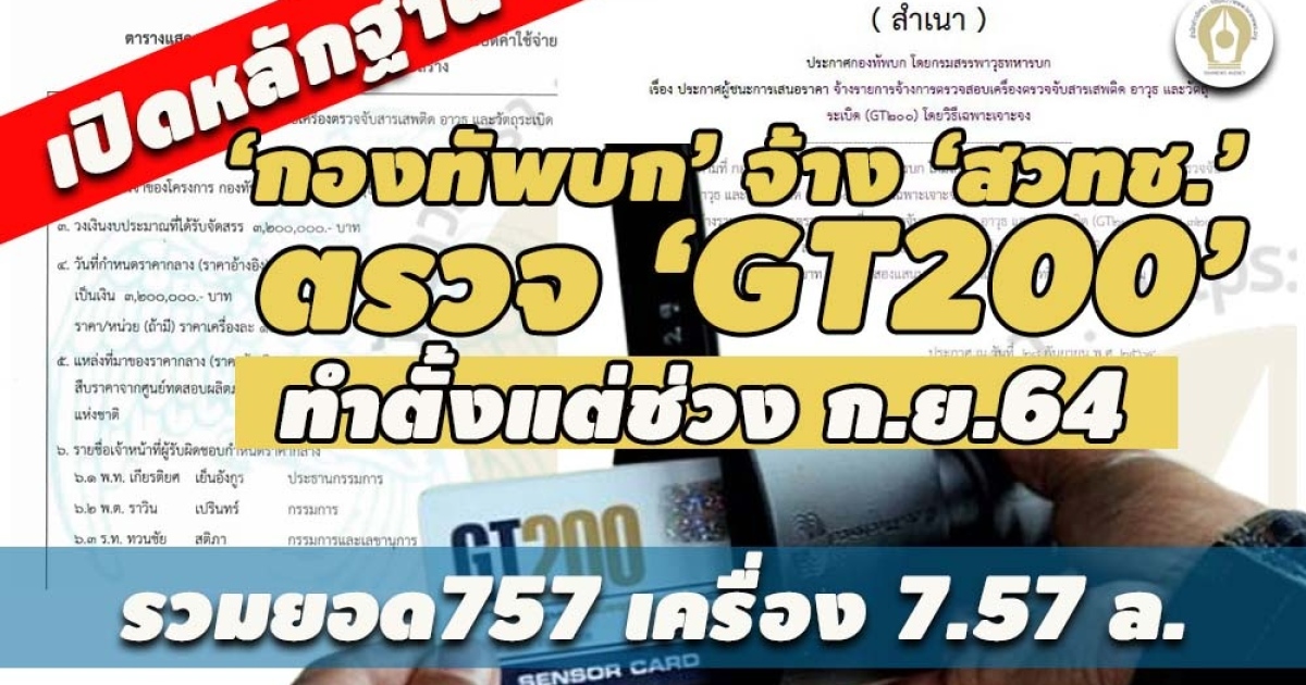 • เปิดหลักฐาน! กองทัพบกจ้างสวทช.ตรวจGT200 ทำตั้งแต่ช่วง ก.ย.64 รวมยอด 757เครื่อง7.57 ล.