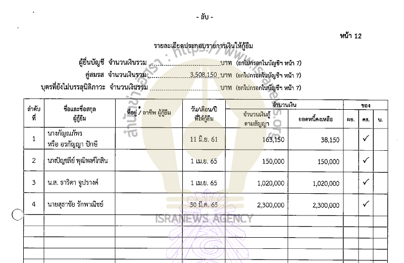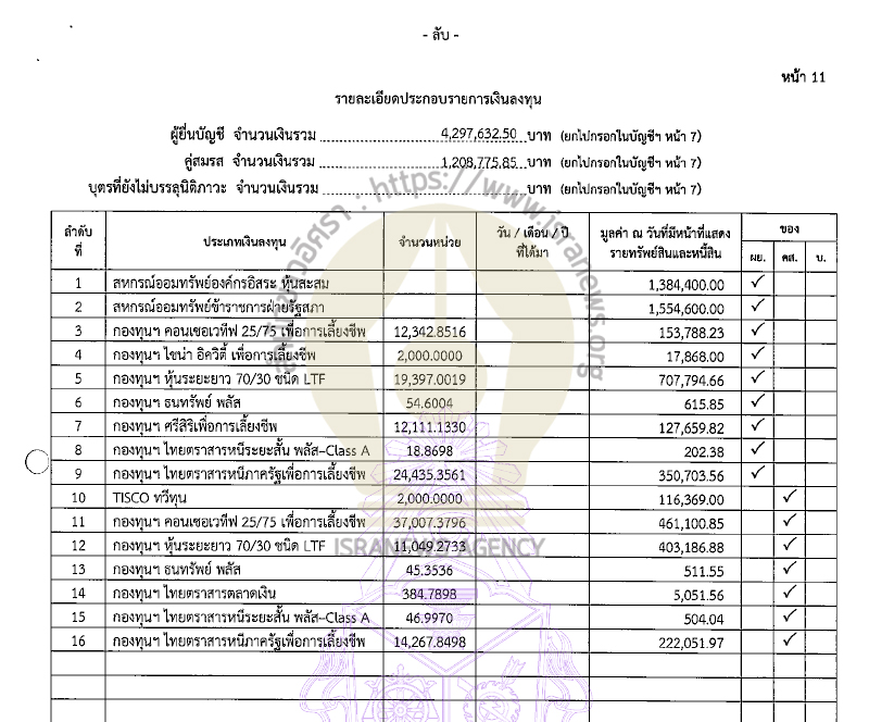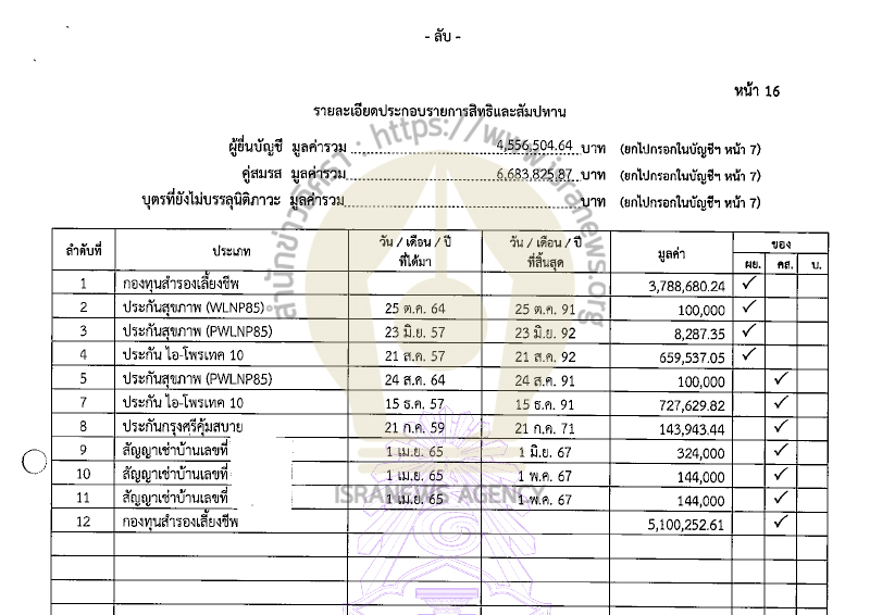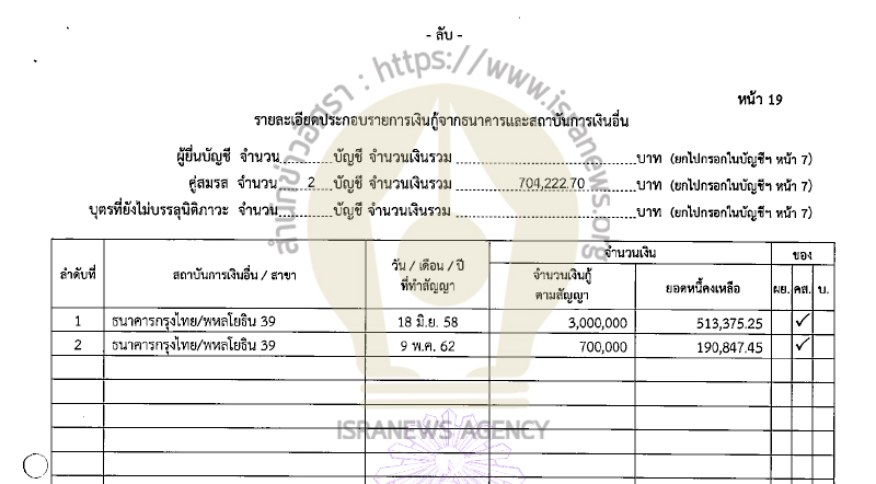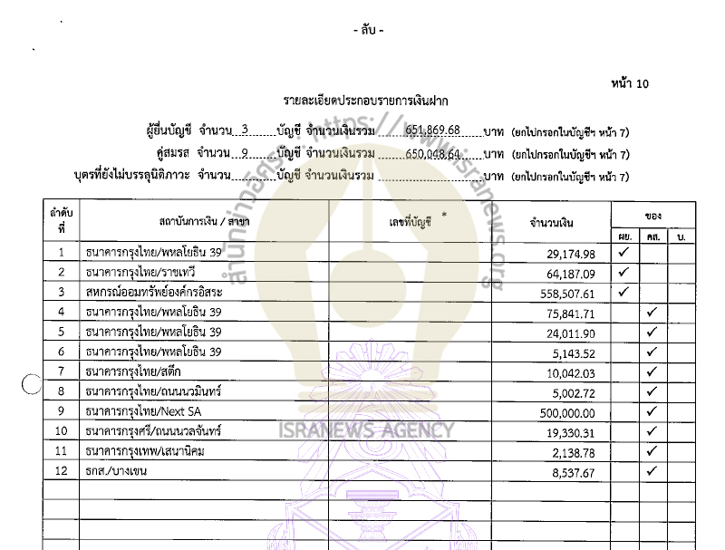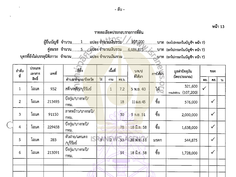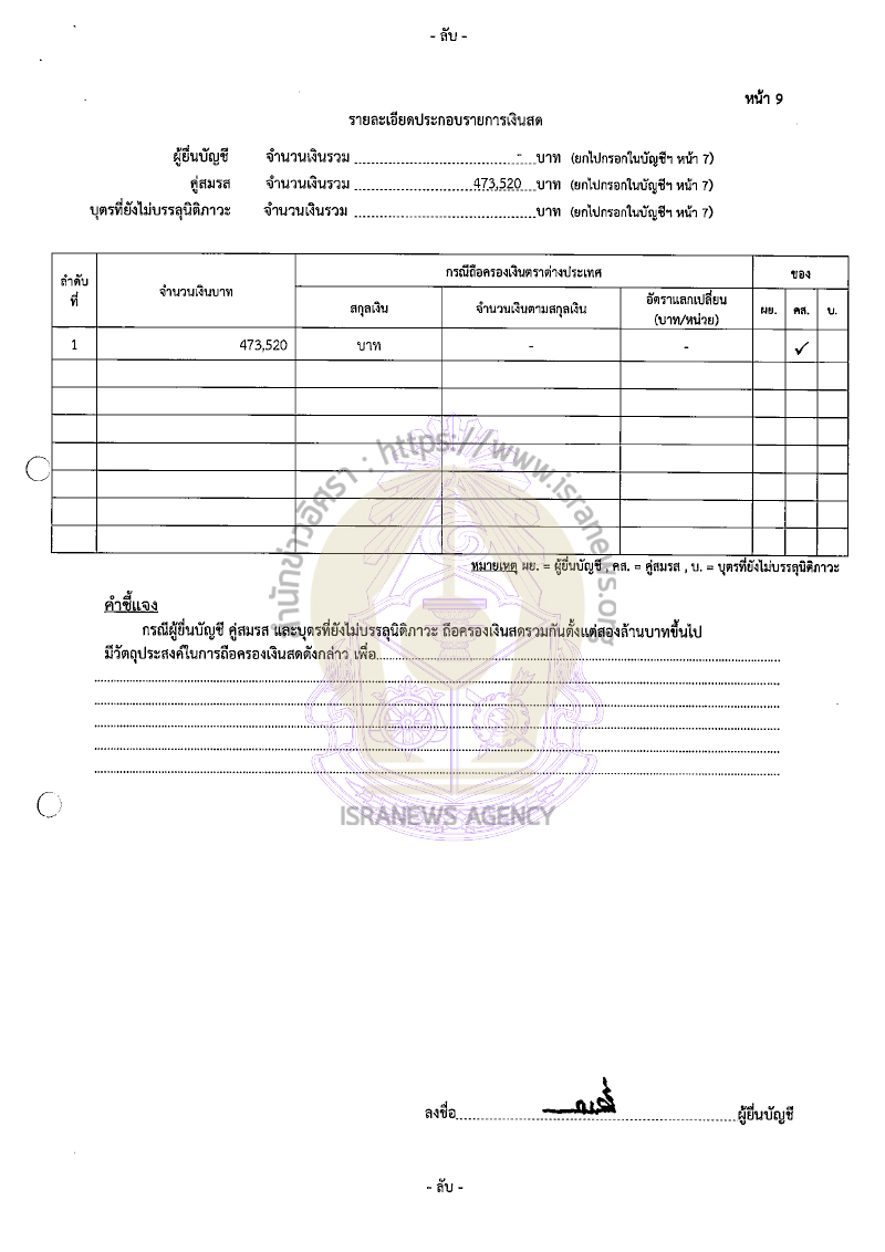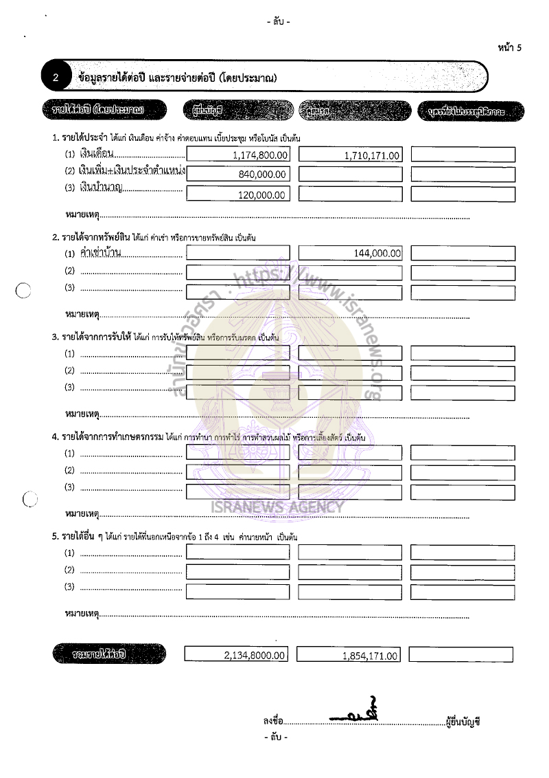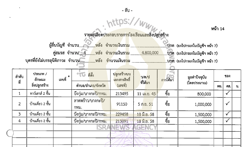 คู่สมรส แจ้งมีรายได้ต่อปี 1,854,171 บาท จากเงินเดือน 1,710,171 บาท ค่าเช่าบ้าน 144,000 บาท
