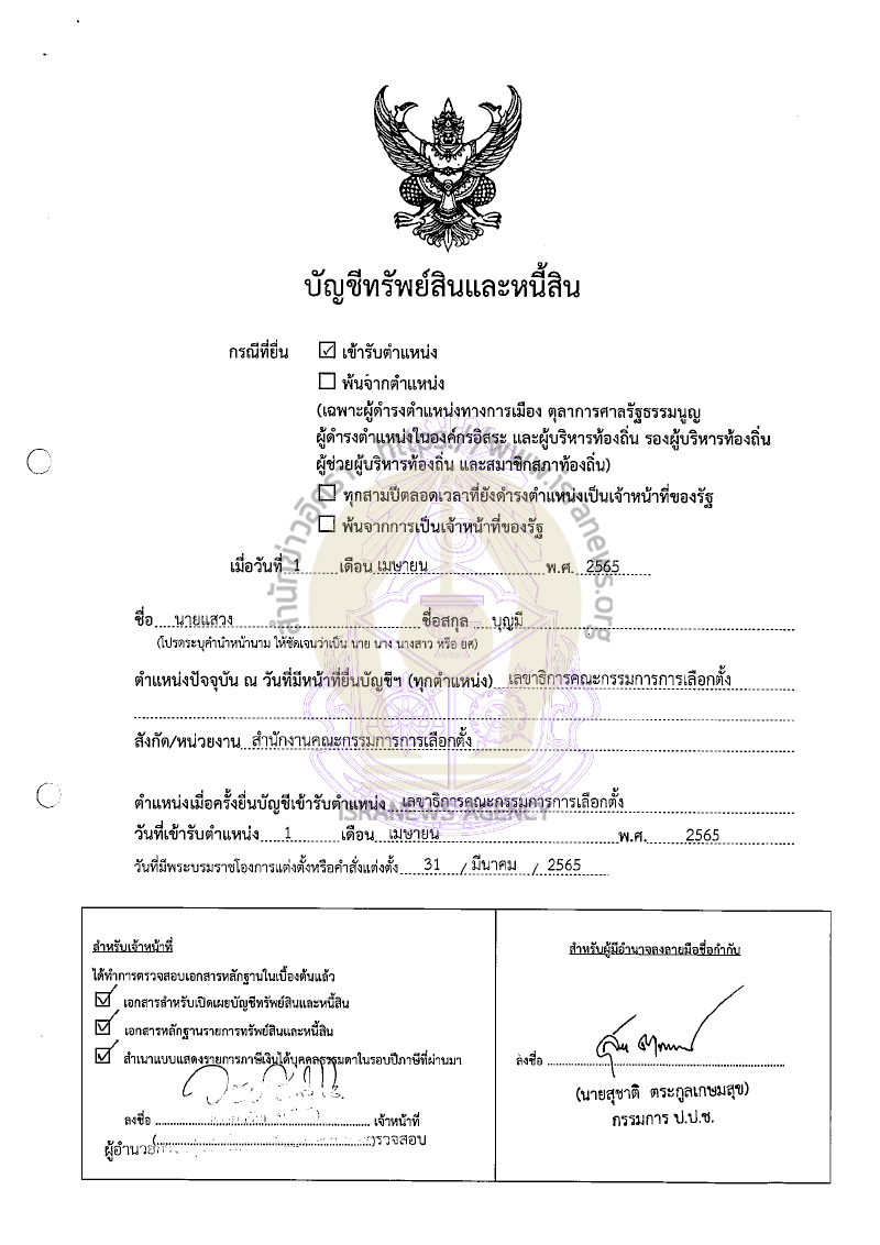 ผู้สื่อข่าวรายงานว่า เมื่อวันที่ 22 มิ.ย.2565 สำนักงานคณะกรรมการป้องกันและปราบปรามการทุจริตแห่งชาติ (ป.ป.ช.) เปิดเผยบัญชีทรัพย์สินและหนี้สินและเอกสารประกอบของผู้ดำรงตำแหน่งระดับสูง รายของ นายแสวง บุญมี กรณี เข้ารับตำแหน่งเลขาธิการคณะกรรมการการเลือกตั้ง (กกต.) เมื่อวันที่ 1 เม.ย.2565