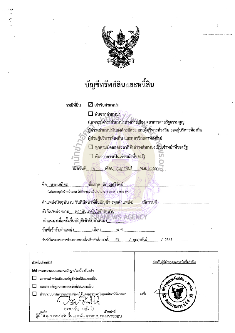 ผู้สื่อข่าวรายงานว่า เมื่อวันที่ 24 มิ.ย.2565 สำนักงานคณะกรรมการป้องกันและปราบปรามการทุจริตแห่งชาติ (ป.ป.ช.) เปิดเผยบัญชีทรัพย์สินและหนี้สินและเอกสารประกอบของผู้ดำรงตำแหน่งระดับสูง รายของ นายเสถียร ธัญญศรีรัตน์ กรณีเข้ารับตำแหน่งอธิการบดีสถาบันเทคโนโลยีปทุมวัน เมื่อวันที่ 23 ก.พ.2565