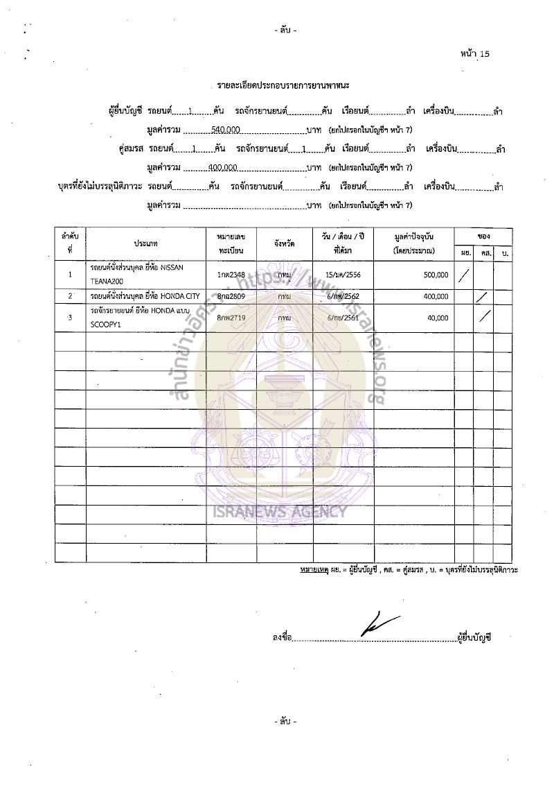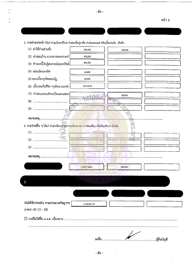 แจ้งมีรายจ่าย 209,904 บาท จากค่าใช้จ่ายส่วนตัว 120,000 บาท ค่าผ่อนรถยนต์ทะเบียน 89,904 บาท
