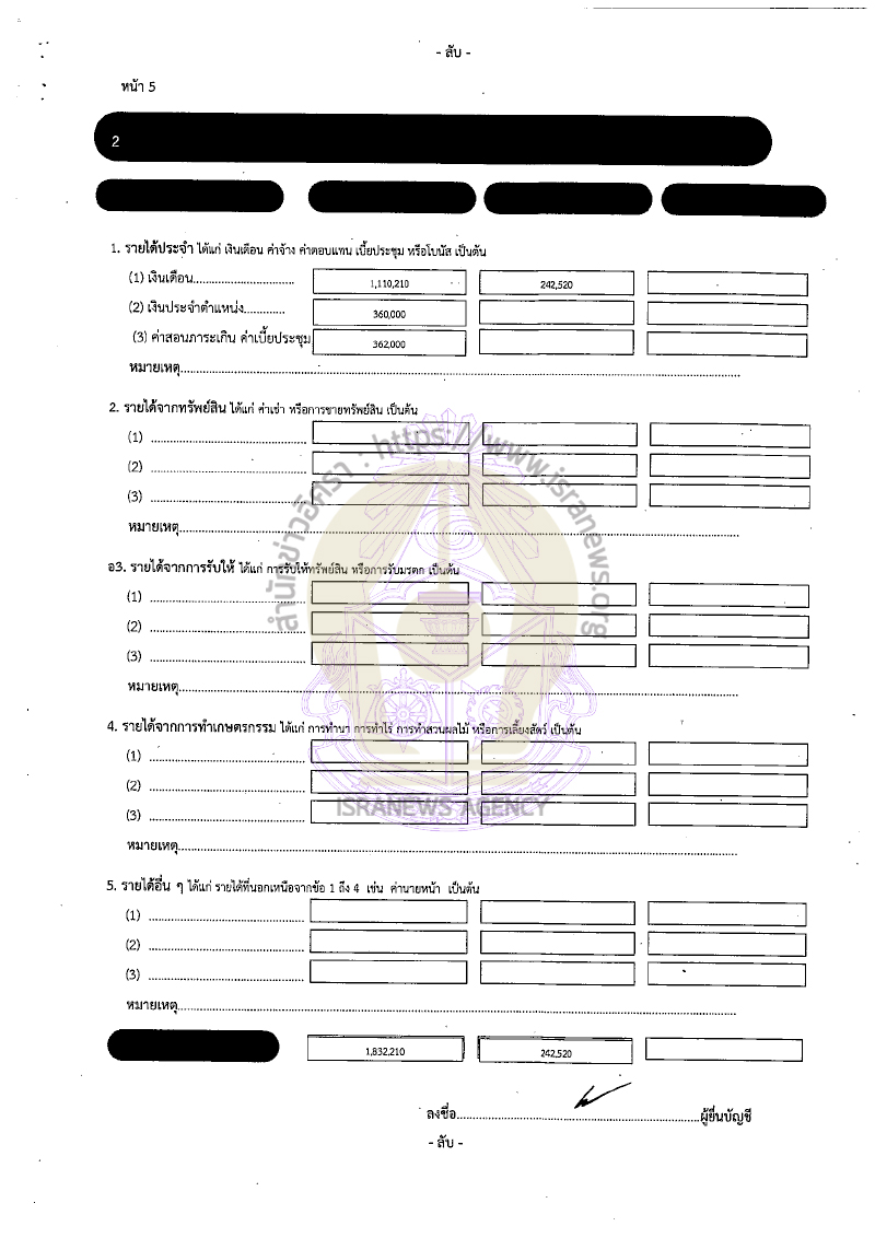 คู่สมรส แจ้งมีรายได้ต่อปี 242,520 บาทจากเงินเดือน