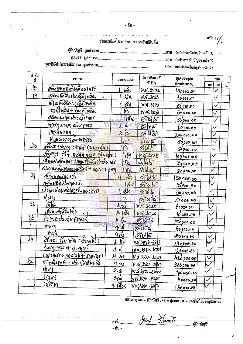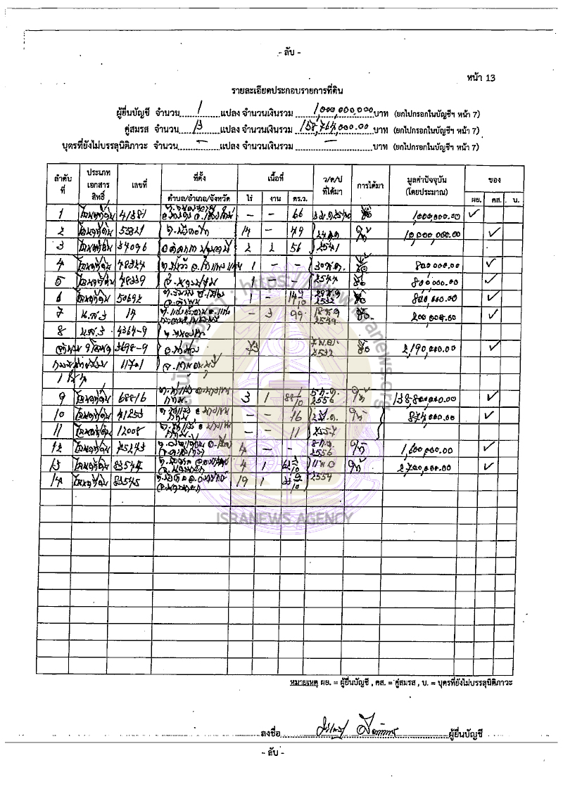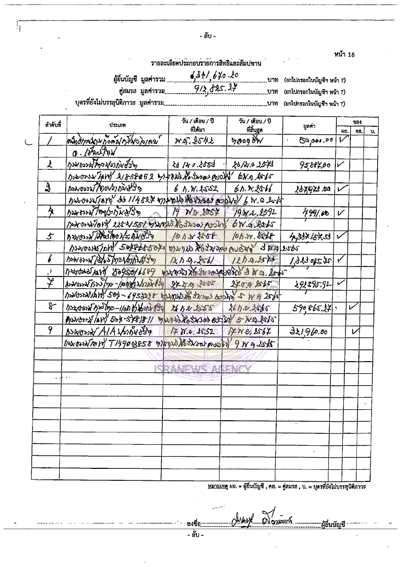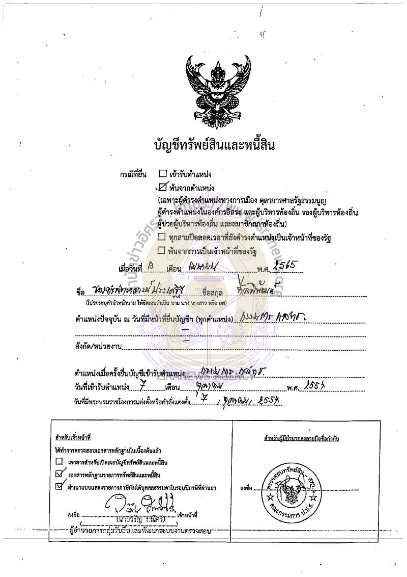 แจ้งมีหนี้สิน 22,947,717.82 บาท จากเงินเบิกเกินบัญชี 70,226.54 บาท เงินกู้ธนาคาร 22,877,491.28 บาท