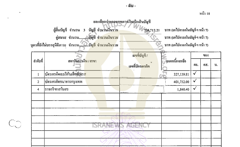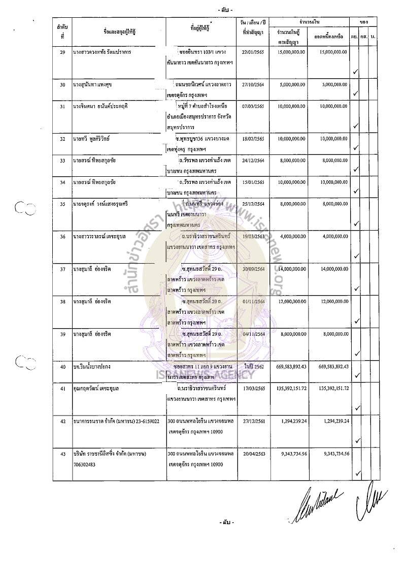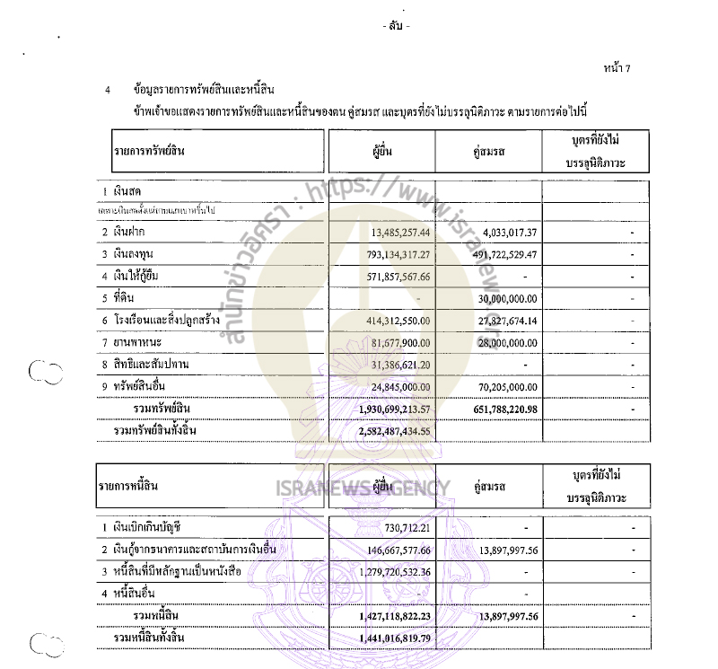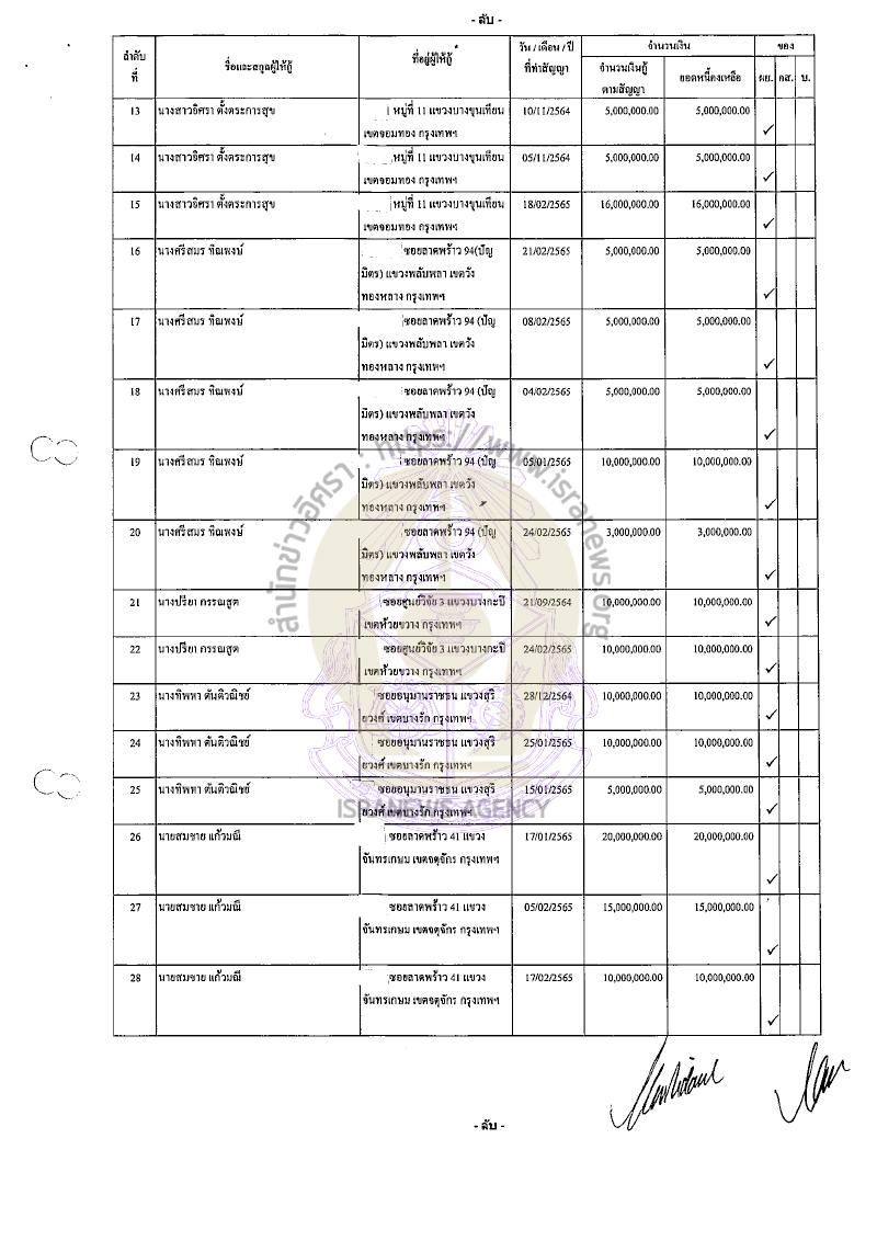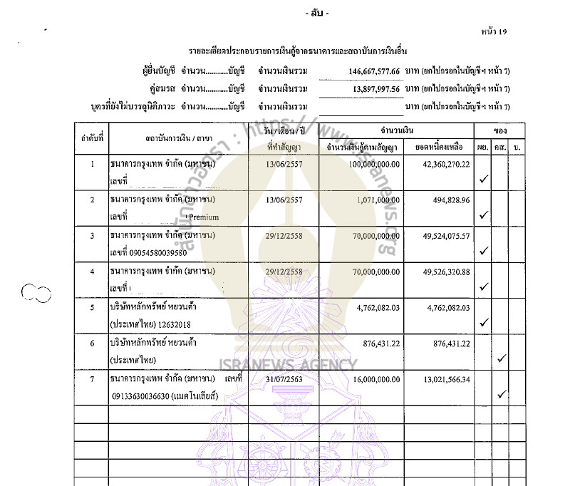 แจ้งมีหนี้สิน 13,897,997.56 บาทจากเงินกู้ธนาคาร