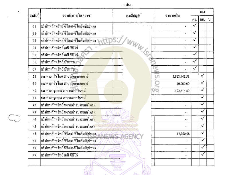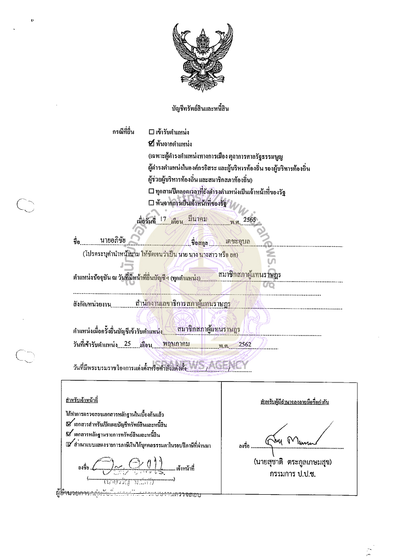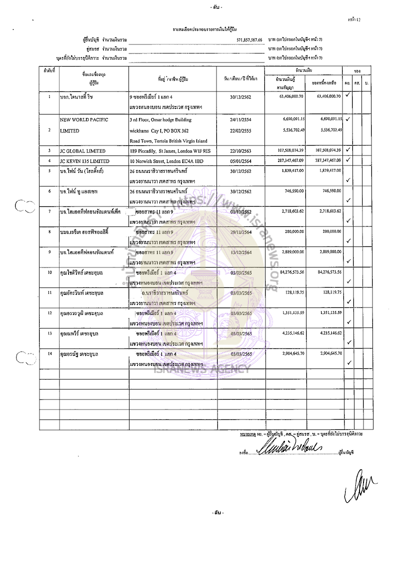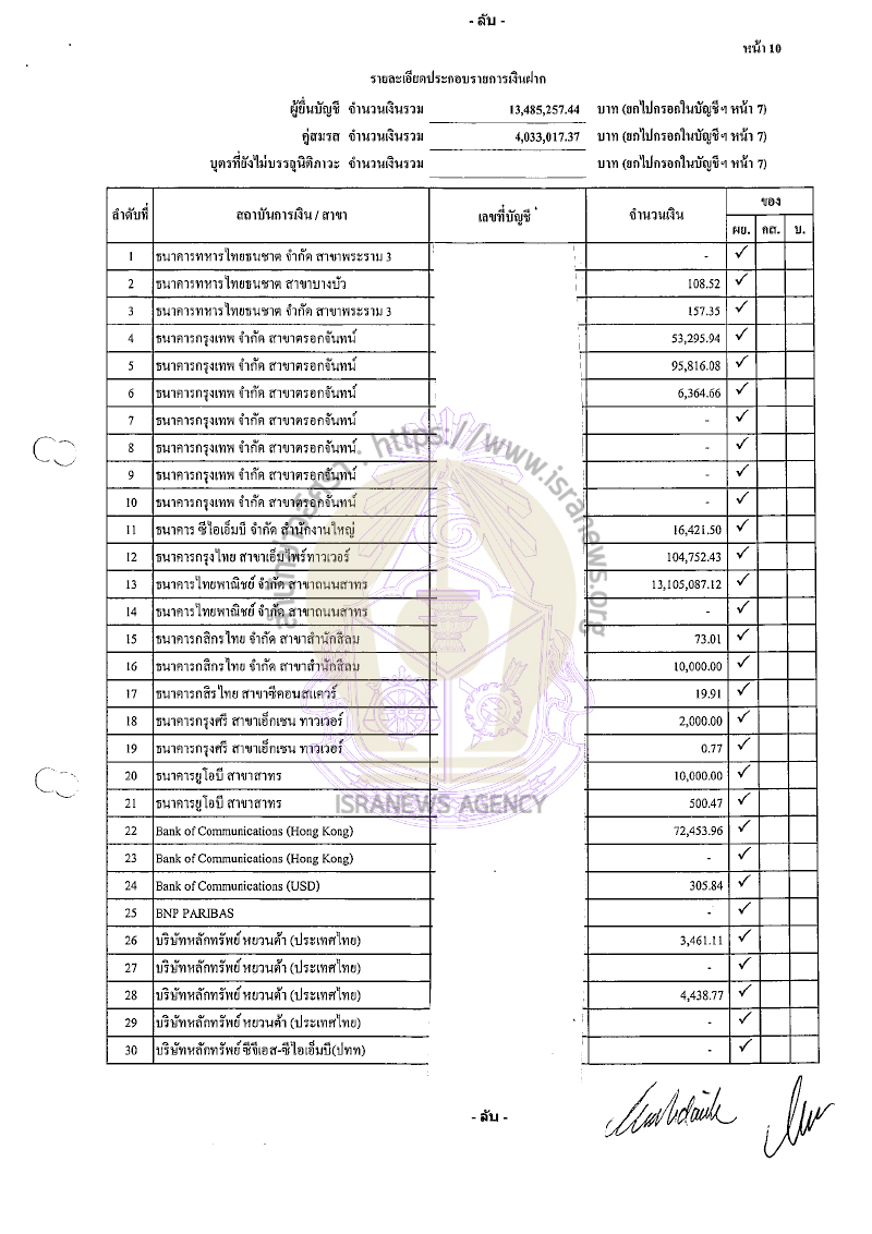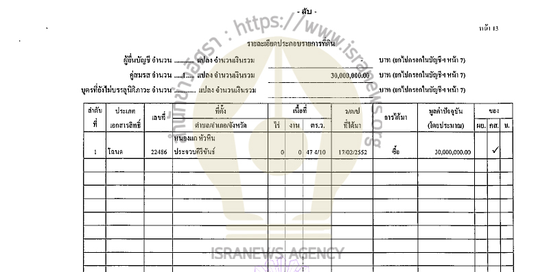 แจ้งมีหนี้สิน 13,897,997.56 บาทจากเงินกู้ธนาคาร