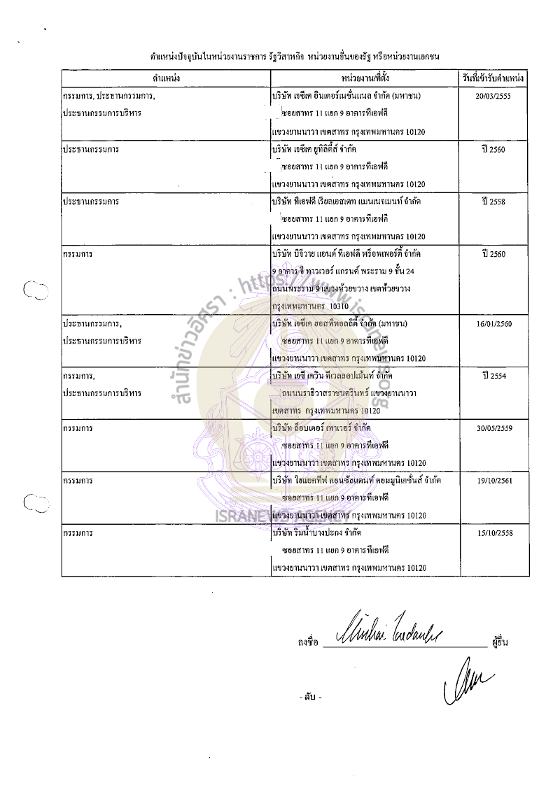 8.บริษัท ไฮแอคทึฟ คอนซัลแตนท์ คอมมูนิชั่นส์ จำกัด 9.บริษัท ริมน้ำบางปะกง จำกัด 10.บริษัท ไฮแอปทีฟคอนซัลแตนท์ จำกัด 11.บริษัท ไฟน์ ทูแอสเซท จำกัด 12.บริษัท เจซี เควิน ฟู้ด แอนด์ เบฟเวอเรจ จำกัด 13.บริษัท เอพี ไพร์ม พร็อมเพอร์ตี้ จำกัด 14.บริษัท ราชดำริ เรียลเอสเตท จำกัด
