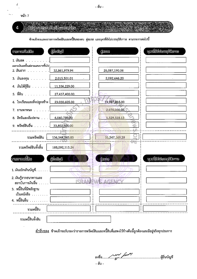 มีทรัพย์สินรวมทั้งสิ้น 188,092,115.24 บาท ไม่มีหนี้สิน