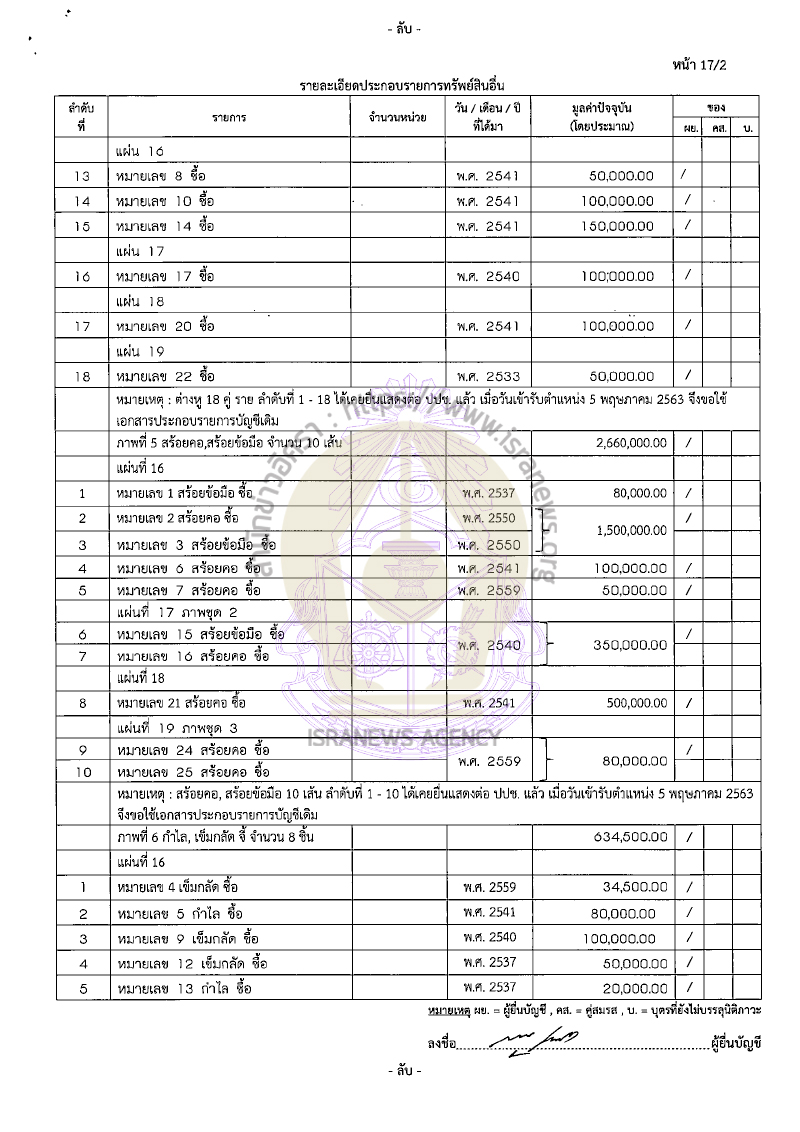 - ทรัพย์สิน 133 ล.'สรรเสริญ'นั่งอธิบดีกรมประชาฯครบ 3 ปี ภรรยามีเครื่องเพชร-นาฬิกา 63 ล.