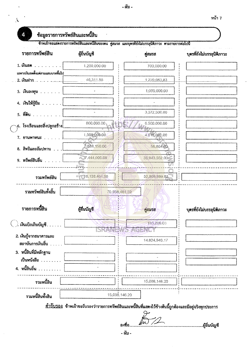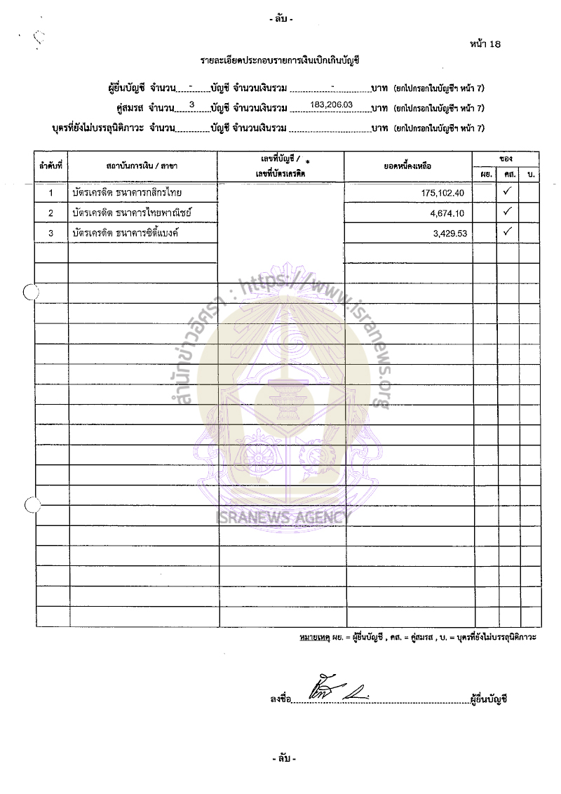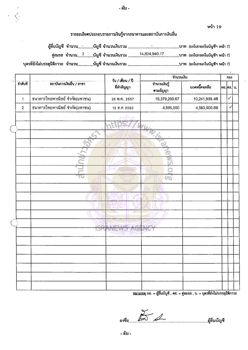 มีหนี้สิน 15,008,146.20 บาทจากเงินเบิกเกินบัญชี 183,206.03 บาท เงินกู้ธนาคาร 14,824,940.17 บาท