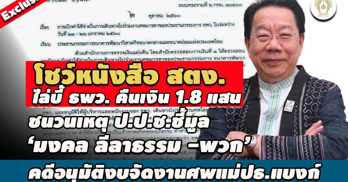 - สตง.สั่งเรียกเงินคืน1.8 แสน! เบื้องลึกคดีจัดงานศพแม่ ปธ.ธพว.ก่อน ป.ป.ช.ชี้มูล