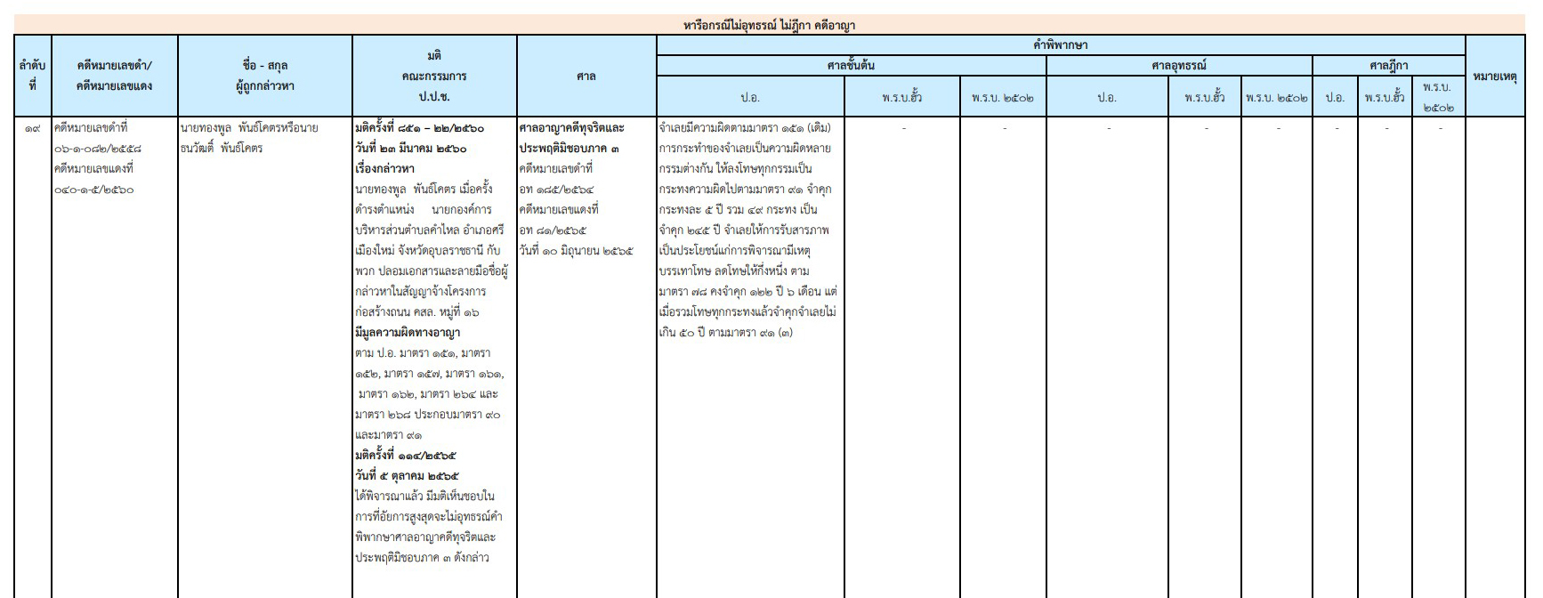 ล่าสุด เมื่อวันที่ 10 มิถุนายน 2565 ศาลอาญาคดีทุจริตและประพฤติมิชอบภาค 3 มีคำพิพากษาว่า นายทองพูล พันธ์โคตร หรือ นายธนวัฒติ์ พันธ์โคตร มีความผิดตามมาตรา 151 การกระทำของจำเลยเป็นความผิดหลายกรรมต่างกัน ให้ลงโทษทุกกรรมเป็นกระทงความผิดไปตามมาตรา 91
