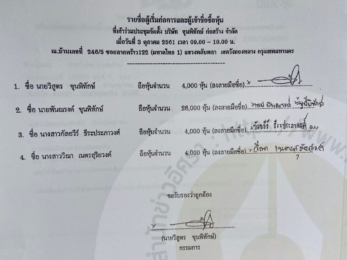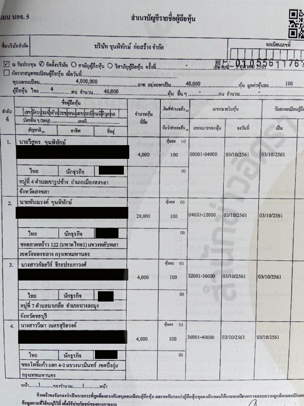 5.บริษัท ขุนพิทักษ์ ก่อสร้าง จำกัด จดทะเบียนวันที่ 11 ต.ค.2561 ทุน4 ล้านบาท ล่าสุดเพิ่มเป็น 24 ล้านบท ประกอบการ โรงแรม รีสอร์ทและห้องชุด ที่ตั้งเลขที่ 246/5 ซอยลาดพร้าว 122 (มหาดไทย1) แขวงพลับพลา เขตวังทองหลาง กรุงเทพฯ 10 ส.ค.2565 ย้ายที่ตั้ง เลขที่ 28/9 หมู่ 6 ต.ขนอม อ.ขนอม จ.นครศรีธรรมราช (ที่ตั้งปัจจุบัน) นายวิสูตร ขุนพิทักษ์ เป็นกรรมการ นายพันณรงค์ ถือ 28,000 หุ้น อีก 3 คนคือ นายวิสูตร ขุนพิทักษ์ น.ส.กัลยวีร์ ธีระประภาวงศ์ และ น.ส.วีณา เนตรสุริยวงค์ คนละ 4,000 หุ้น ต่อมาวันที่ 22 ก.พ.2564 นายพันณรงค์โอนหุ้นให้นายวิสูตร และนายวิสูตรถือหุ้นใหญ่ ไม่มีชื่อนายพันณรงค์ร่วมถือหุ้น
