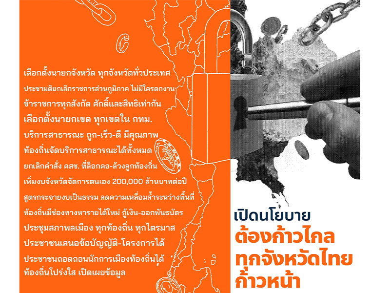 - ยกเลิกกฎระเบียบและคำสั่ง คสช. ที่ล็อกคอ-ล้วงลูกท้องถิ่น ภายใน 100 วัน