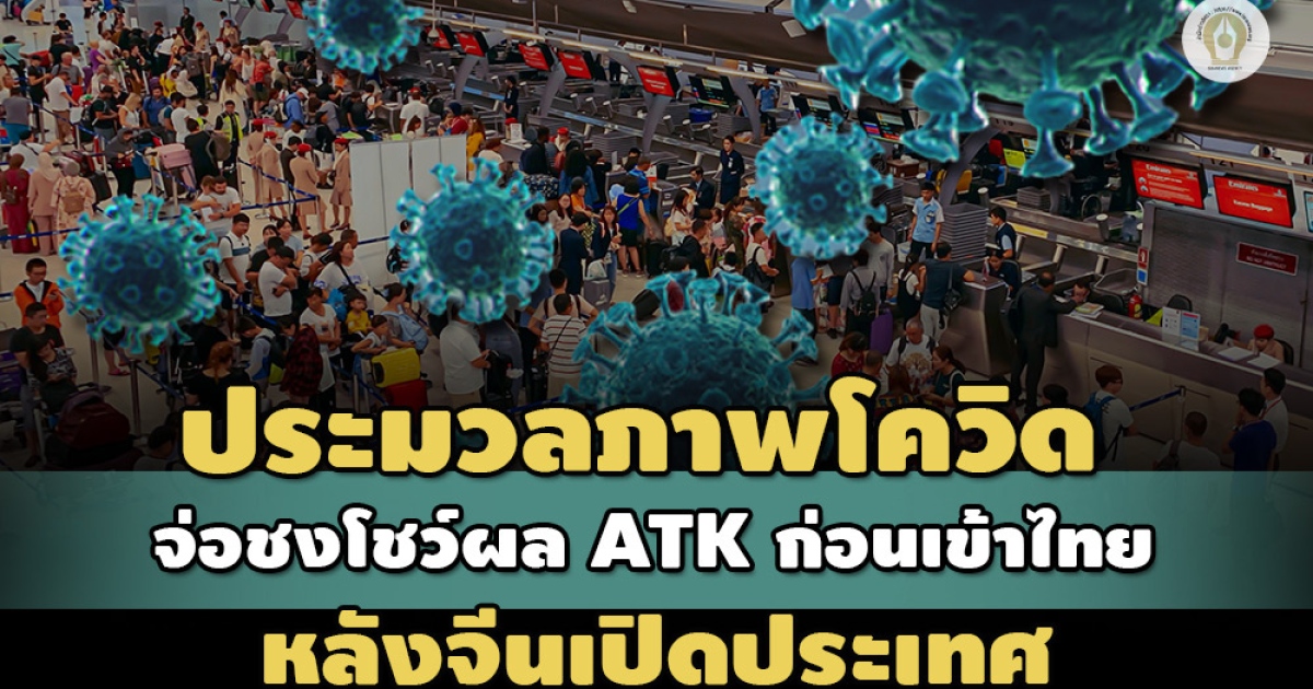 มีผลการตรวจโควิดอย่างน้อยด้วย ATK ผลเป็นลบก่อนเดินทางถึงไทย 48 ชั่วโมง