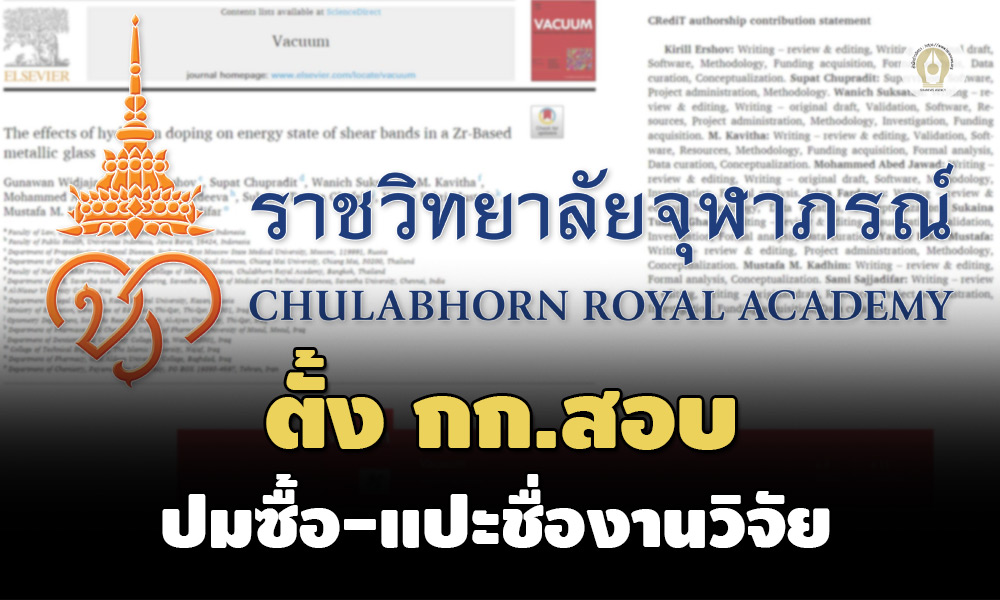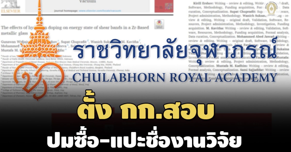 เผยความคืบหน้ากรณีซื้อ-แปะชื่อตีพิมพ์งานวิจัย ล่าสุดราชวิทยาลัยจุฬาภรณ์ สั่งตั้ง กก.สอบอาจารย์ในสังกัดหลังโผล่ชื่องานวิจัยเดียวคน มช.แล้ว เจ้าตัวทำบันทึกชี้แจงแสดงความบริสุทธิ์ใจแล้ว ด้าน 'เอนก เหล่าธรรมทัศน์' รมว.อว. ยันเรื่องนี้ตามตรวจสอบจริงจังเด็ดขาด เตือนบุคคลากรทางวิชาการระมัดระวังอย่าให้เกิดความด่างพร้อย