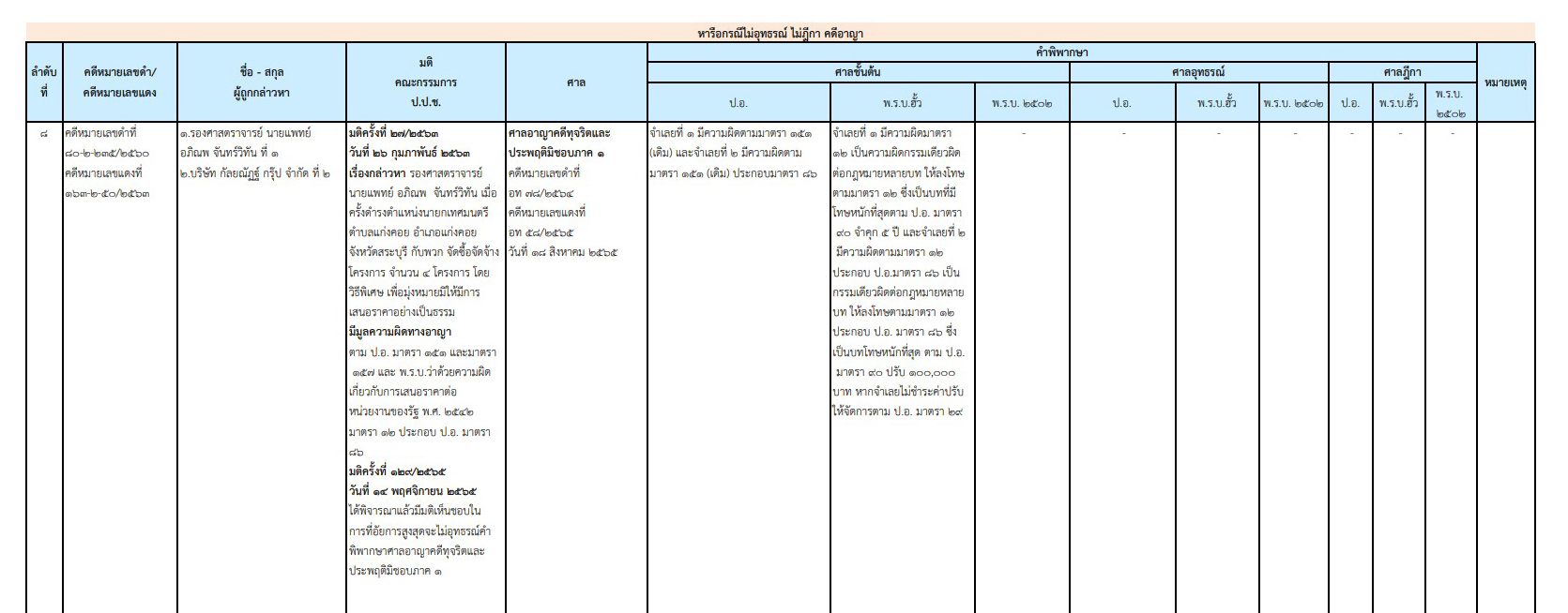 ซึ่งถูกคณะกรรมการ ป.ป.ช. ลงมติชี้มูลความผิดทางอาญา ตาม ป.อ. 151 , 157 และ พ.ร.บ.ว่าด้วยความผิดเกี่ยวกับการเสนอราคาต่อหน่วยงานของรัฐ พ.ศ. 2542 (พ.ร.บ.ฮั้ว) มาตรา 12 ประกอบ ป.อ. มาตรา 86 ตั้งแต่เมื่อวันที่ 26 กุมภาพันธ์ 2563 ที่ผ่านมา