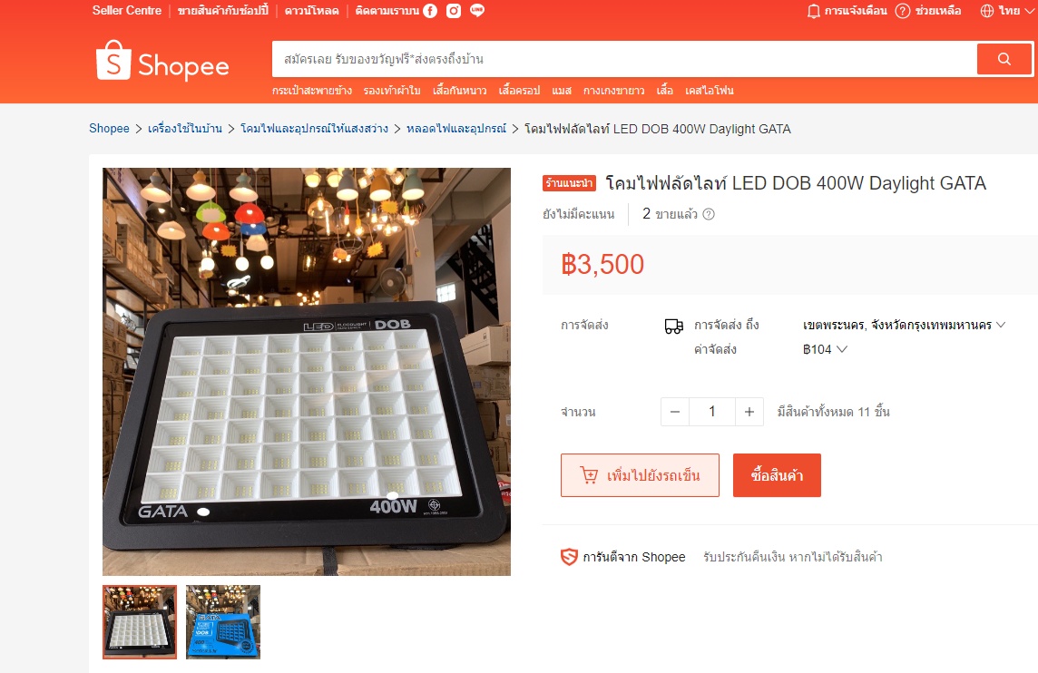 ส่วนสินค้ารายการที่ 100 โคมไฟสปอร์ตไลท์ LED 400 วัตต์ DAYLIGHT ราคาต่อหน่วย 5,500 บาท จัดซื้อ 10 โคม คิดเป็นราคารวม 55,000 บาท