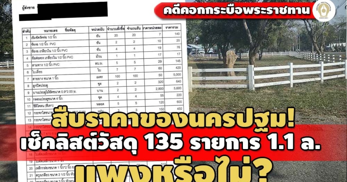 ทั้งหมดนี้ คือ ข้อมูลเปรียบเทียบระหว่างราคาวัสดุสร้างที่ใช้ในการก่อสร้างโรงเรือนเลี้ยงกระบือไทย (หรือ คอกกระบือทรงไถ่ชีวิต พระราชทาน) ณ โรงเรียนการบินกำแพงแสน จ.นครปฐม จำนวน 135 รายการ กับราคาขายในท้องตลาดนครปฐม และในโลกออนไลน์ ที่สำนักข่าวอิศรา พบจะสืบค้นได้