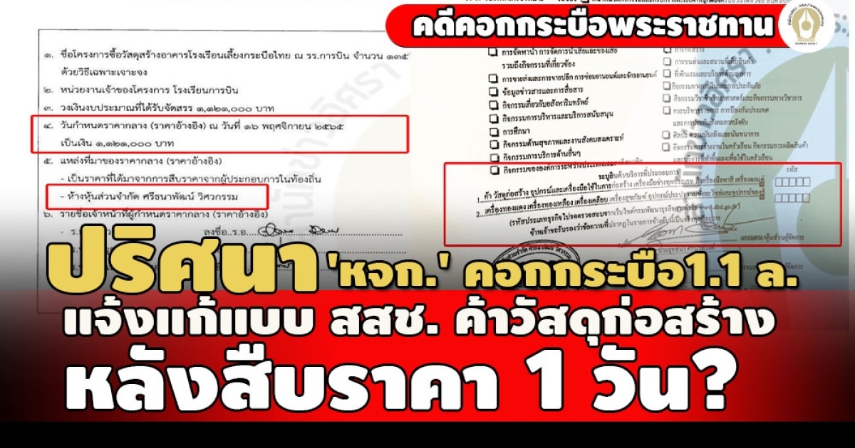 "...น่าสังเกตว่า การสืบราคากลาง เป็นช่วงเวลาก่อน ที่หจก.ศรีธนาพัฒน์ ฯ จดทะเบียน เปลี่ยนข้อมูลในแบบแสดงรายการเกี่ยวกับการประกอบธุรกิจ มาเป็น ค้า วัสดุก่อสร้าง อุปกรณ์และเครื่องมือใช้ในการก่อสร้าง เครื่องมือช่างทุกประเภท ฯ ในวันที่ 17 พ.ย.2565 หรือประมาณ 1 วัน เท่านั้น..."