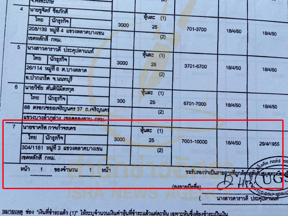 ผู้สื่อข่าวสำนักข่าวอิศราจึงได้ทิ้งข้อมูลติดต่อเพื่อจะขอสอบถามผู้บริหารบริษัท ยูไนเต็ด กอล์ฟ เซอร์วิส จำกัด เกี่ยวกับข้อมูลของนายชาคริสต่อไป