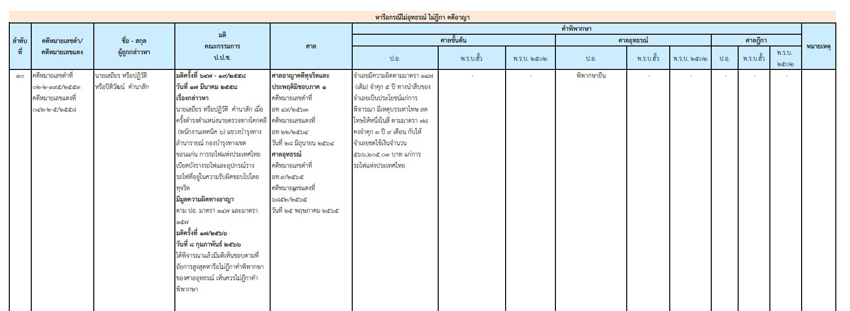 ป.ป.ช.เผยแพร่ความคืบหน้าคดีกล่าวหา 'เสถียร หรือ ปฏิวัติ หรือ ปิติวัฒน์ คำนาสัก' อดีตนายตรวจทางโคกคลี แขวงบำรุงทางลำนารายณ์ รฟท.เบียดบังรางรถไฟ-อุปกรณ์ไปโดยทุจริต ล่าสุด ศาลอุทธรณ์ พิพากษายืนลงโทษจำคุก 3 ปี 9 เดือน ไม่รอลงอาญา ชดใช้เงิน 566,204.03 บาท