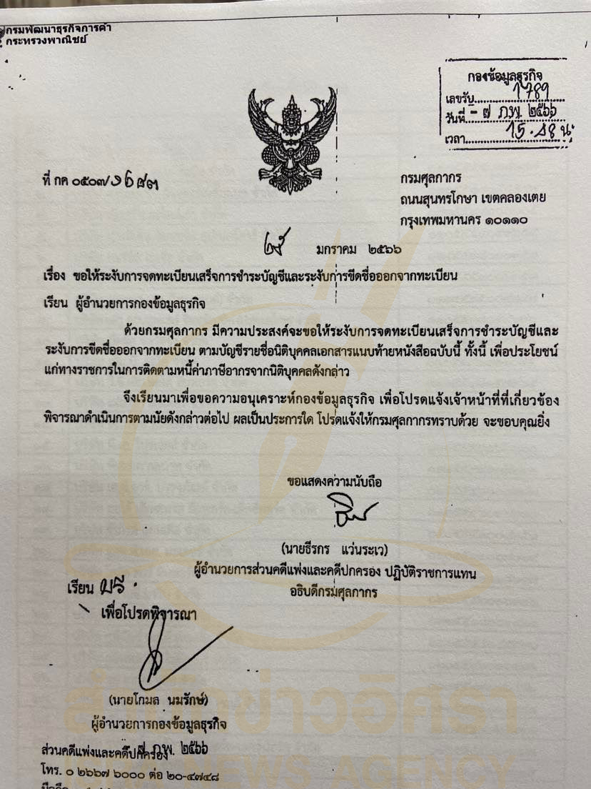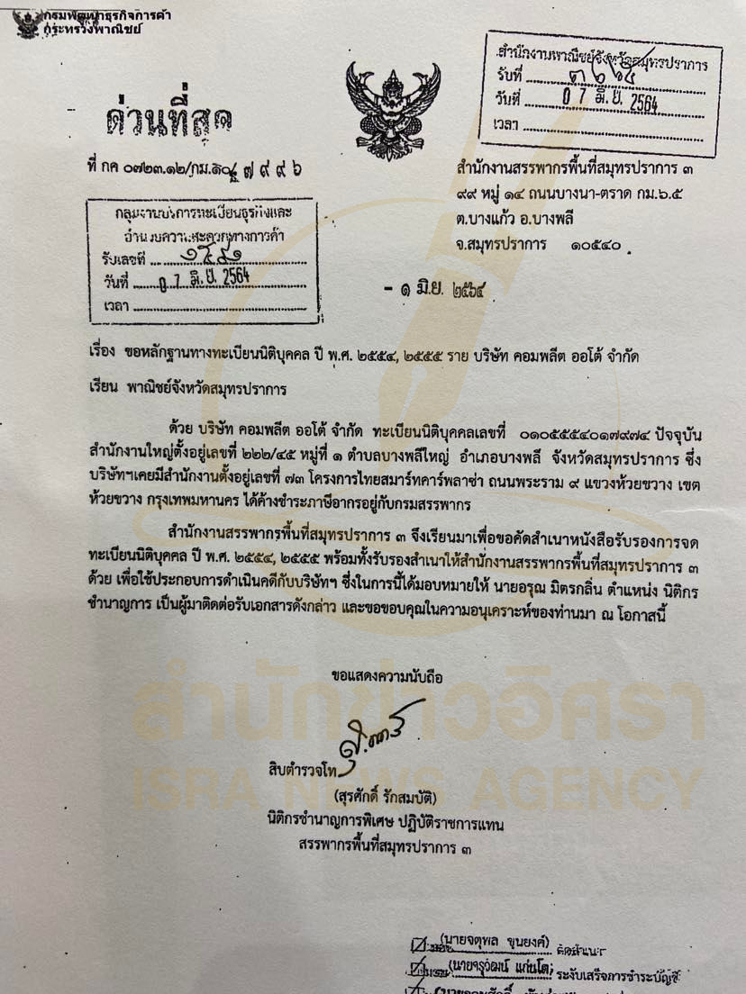 จากการตรวจสอบพบว่า บริษัท คอมพลีต ออโต้ จำกัด ถูก 3 หน่วยงาน ได้แก่ กรมสรรพากร กรมศุลกากร และกรมสอบสวนคดีพิเศษ ทำหนังสือถึงนายทะเบียนหุ้นส่วนบริษัท กรมพัฒนาธุรกิจการค้า ขอให้ระงับการจดทะเบียนเสร็จการชำระบัญชี และ ขอหลักฐานการจดทะเบียนนิติบุคคล ตั้งแต่ปี 2556 จนถึง 25 ม.ค.2566 รวมทั้งสิ้นประมาณ 98 ครั้ง (ดูเอกสาร)
