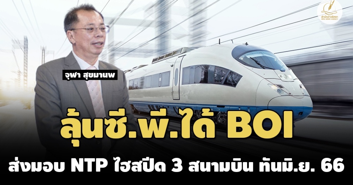 ‘จุฬา สุขมานพ’ เลขาฯอีอีซีคนใหม่ ชี้พร้อมส่งมอบหนังสือ NTP ให้เริ่มงานก่อสร้าง ไฮสปีด 3 สนามบิน 2.24 แสนล้านบ. เหลือเงื่อนไขเดียว รอซี.พี.ได้ BOI เมื่อไหร่ พร้อมส่งมอบทันที ระบุไม่ต้องรอแก้สัญญาจบ สามารถส่งมอบบนเงื่อนไขสัญญาเดิมไปก่อนได้ เผยเหลือแก้ 2 ปม ‘เหตุสุดวิสัย-เคลียร์สร้างไปจ่ายไป’
