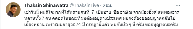 • ตั้งชื่อ 'พฤจ์ธาษิณ' ! อุ๊งอิ๊งคลอดแล้วได้ลูกชาย-ทักษิณ ดีใจได้หลาน คนที่ 7