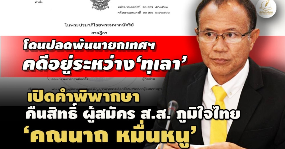 คำพิพากษาศาลฎีกาสั่ง กกต.รับสมัคร ‘คณนาถ หมื่นหนู’ เป็นผู้สมัคร ส.ส.บัญชีรายชื่อ พรรคภฺมิใจไทย หลังผู้ว่าฯพัทลุงปลดพ้นตำแหน่ง กรณี ป.ป.ช.ชี้มูลครั้งดำรงตำแหน่งนายกเทศมนตรีตำบลทะเลน้อย กับพวก 7 คนทุจริตจัดซื้อที่ดินสร้างตลาดน้ำ เจ้าตัวฟ้องศาลปกครองพร้อมยื่นคำขอให้ทุเลาการบังคับคำสั่งชั่วคราว วินิจฉัยถือว่ายังไม่เคยถูกให้พ้นตำแหน่ง