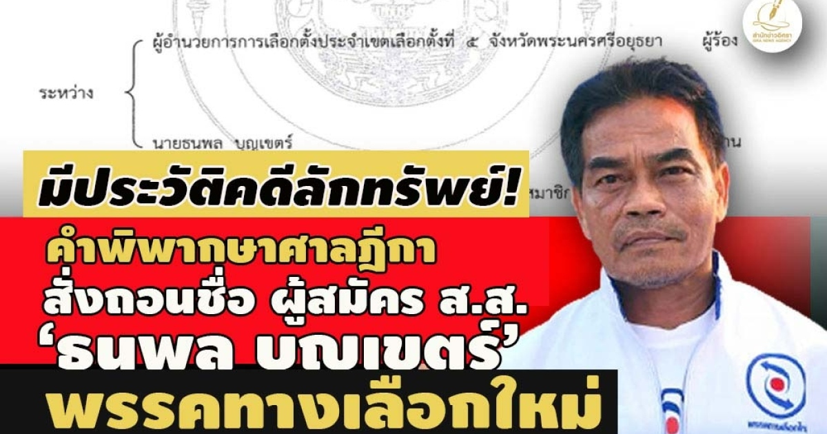 • มีประวัติถูกพิพากษาลักทรัพย์! ศาลฎีกาสั่งถอนชื่อ ผู้สมัคร ส.ส.พระนครศรีอยุธยา