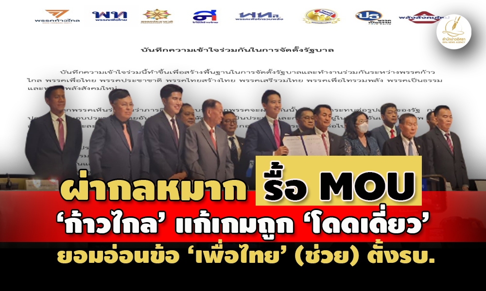 - ฉบับเต็ม! MOU '8 พรรคจัดตั้งรัฐบาลก้าวไกล' เชิดชูพระมหากษัตริย์-ทำงานซื่อสัตย์สุจริต