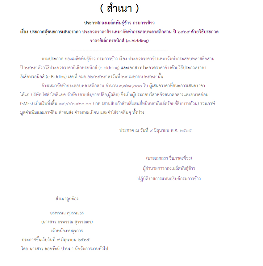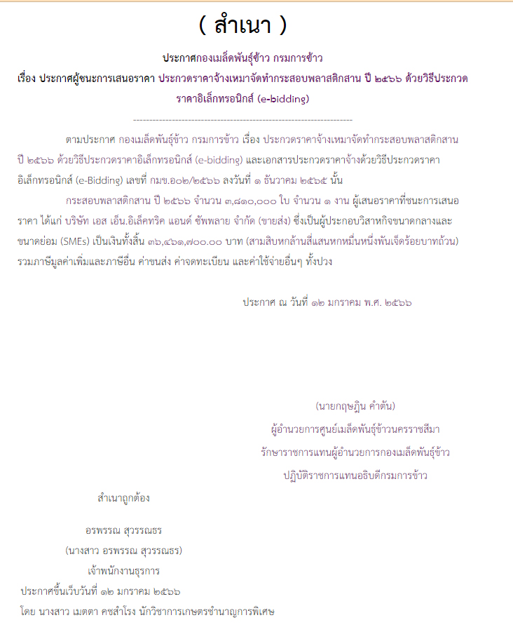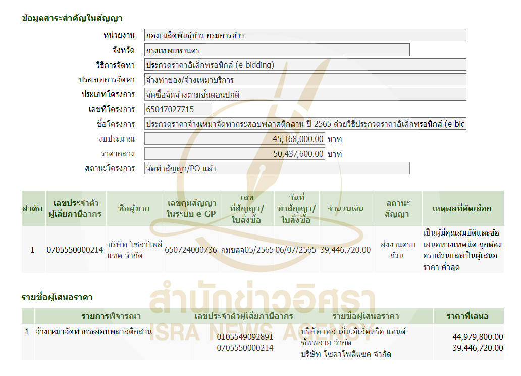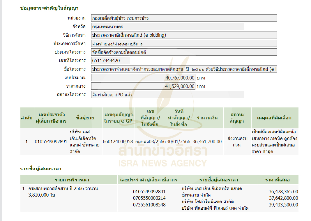 • ไส้ใน! กรมการข้าว จ้างทำกระสอบฯ 2 ปี 75 ล. 2 เอกชนสลับได้งาน-เครือซี.พี.ซื้อซองแต่ไม่แข่ง?