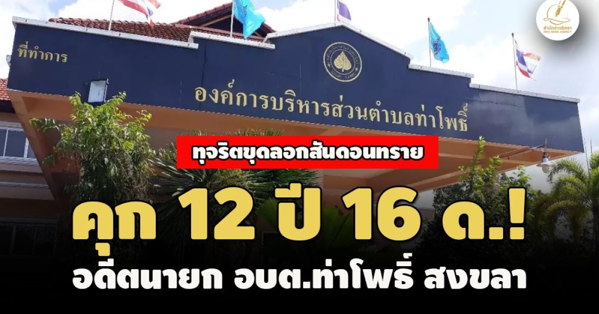 สำนักงาน ป.ป.ช. สงขลา เผยความคืบหน้าผลคดีกล่าวหา 'สุนทร จันทร์งาม' อดีตนายกอบต.ท่าโพธิ์ อำเภอสะเดา สงขลา ทุจริตโครงการขุดลอกสันดอนทรายคลองอู่ตะเภา - คลองหลำ ให้ผู้รับจ้างดูดทรายโดยไม่ชอบ หลีกเลี่ยงไม่เปิดโอกาสให้มีการเสนอราคาเป็นธรรม ล่าสุด ศาลอาญาคดีทุจริตประพฤติมิชอบ ภาค 9 พิพากษาลงโทษ 12 ปี 16 เดือน พวก 1 ราย ไม่เคยทำผิดมาก่อน อายุ 20 ปีเศษ ให้รอการลงโทษ 2 ปี คุมประพฤติด้วย