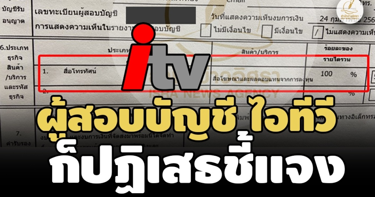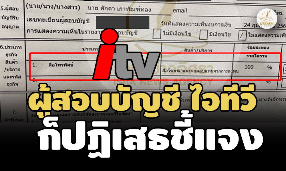 • ให้ถามอินทัช! ผู้สอบบัญชี ITV ก็ไม่แจงปม'พิธา’ชี้พิรุธแบบส.บช.3 แก้ 'สื่อโทรทัศน์'