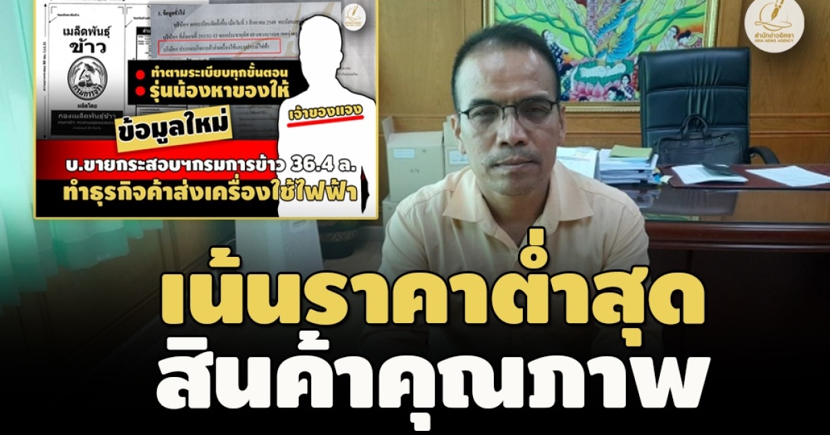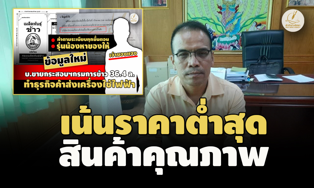 รักษาการ ผอ.กองเมล็ดพันธุ์ข้าว แจงปมบ.ผู้ค้าส่งเครื่องใช้ไฟฟ้า ชนะงานขายกระสอบฯ ทำได้ เหตุองค์ประกอบครบ ยันทำตามระเบียบราชการทุกขั้นตอน เปิดกว้างใครเข้าร่วมก็ได้ เน้นราคาต่ำสุด สินค้ามีคุณภาพ ใครชนะหรือไม่ชนะไม่ได้ใส่ใจตรงนั้น