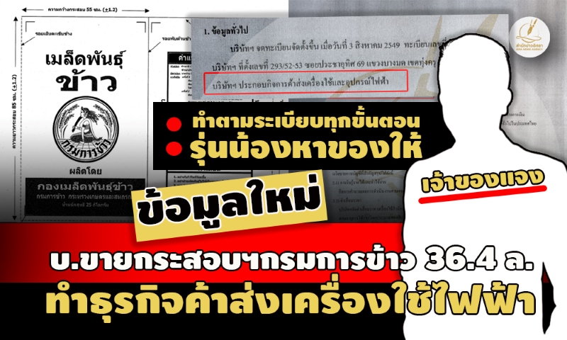 - รุ่นน้องหาของให้! ข้อมูลใหม่ บ.ขายกระสอบฯกรมการข้าว 36.4 ล.ทำธุรกิจค้าส่งเครื่องใช้ไฟฟ้า (3)