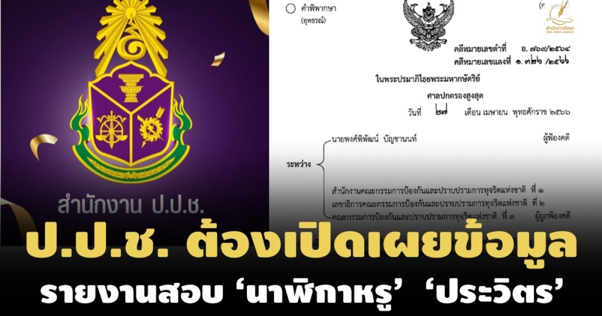 ศาลปกครองสูงสุดมีคำพิพากษายืนตามคำพิพากษาศาลปกครองชั้นต้น ที่สั่งให้ ป.ป.ช. ต้องเปิดเผย เอกสารสำคัญ 2 รายการ ได้แก่