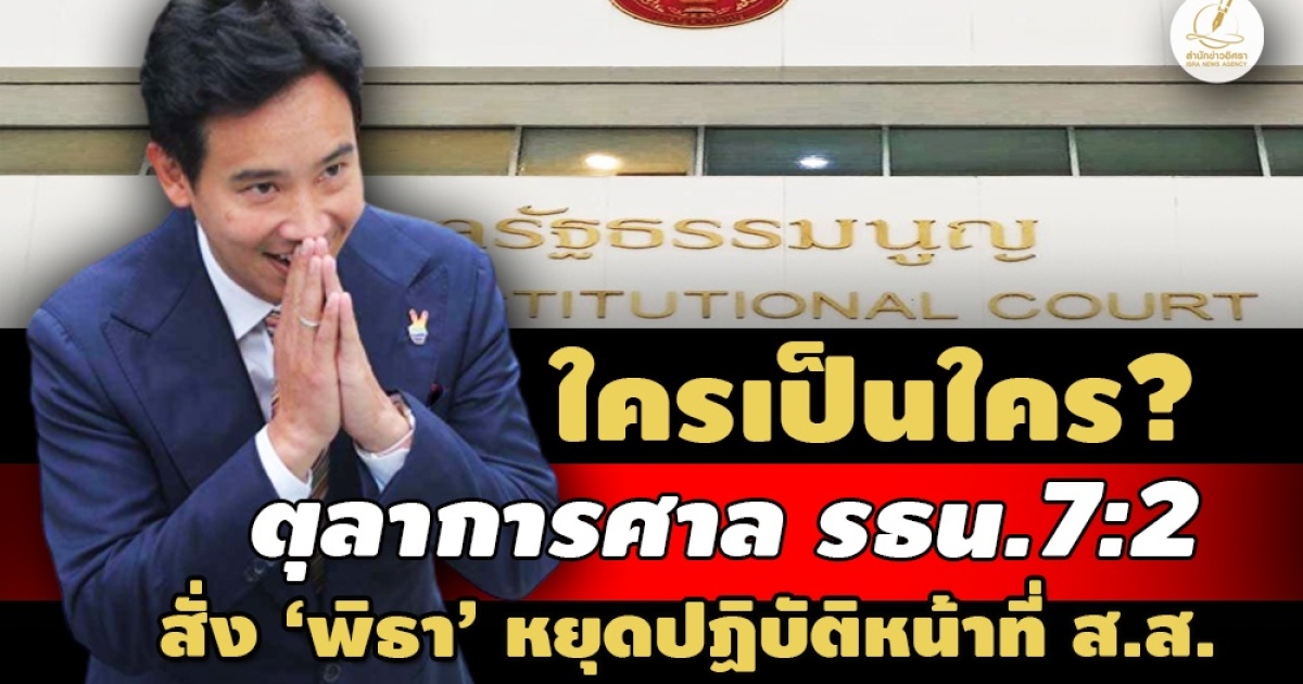 - สั่ง 'พิธา' หยุดปฏิบัติหน้าที่ ส.ส.! ศาล รธน.ลงมติ 7:2 รับคำร้อง กกต.คดีหุ้นไอทีวี