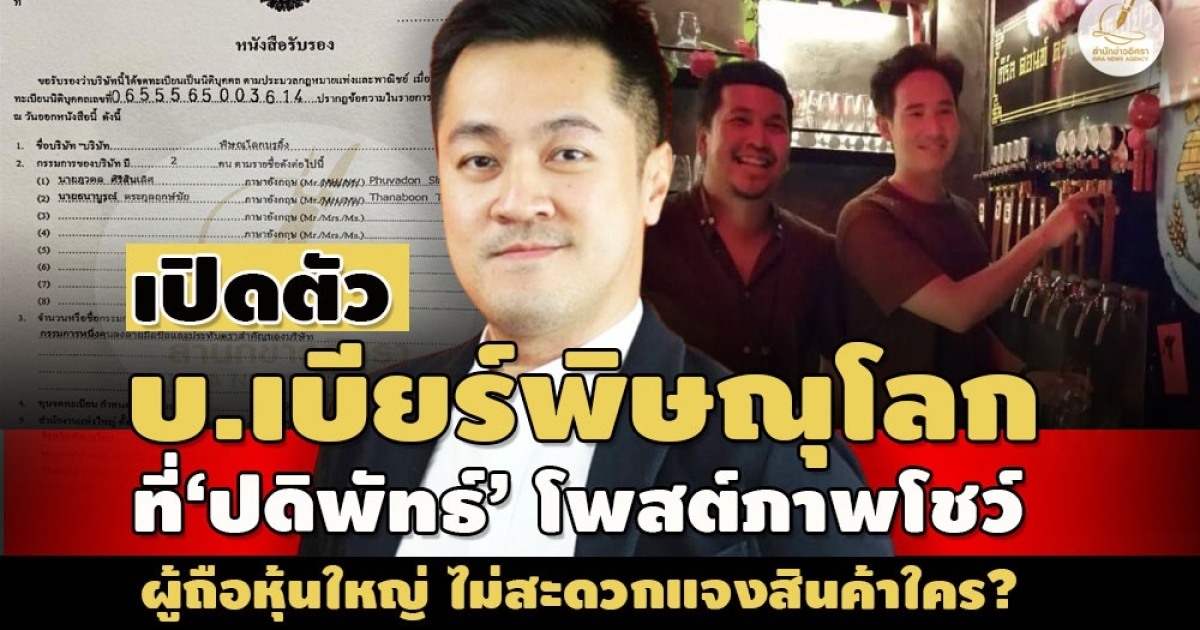 • เปิดตัว บ.เบียร์พิษณุโลก ที่‘ปดิพัทธ์’ โพสต์ภาพโชว์-ผู้ถือหุ้นใหญ่ ไม่สะดวกแจงสินค้าใคร?