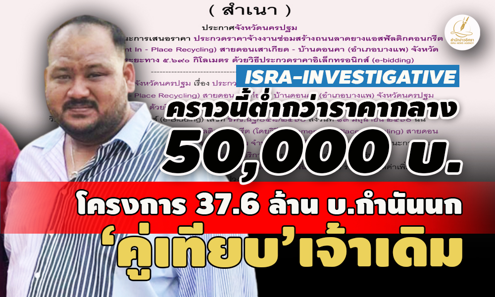 - ไส้ในรับเหมาอีกโครงการ! บ.กำนันนก ฟัน 298.3 ล. ต่ำกว่าราคากลาง 1.5 ล.