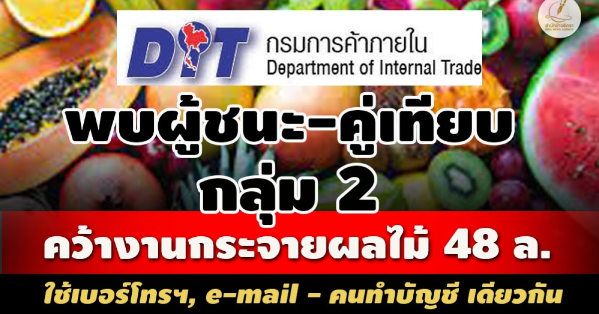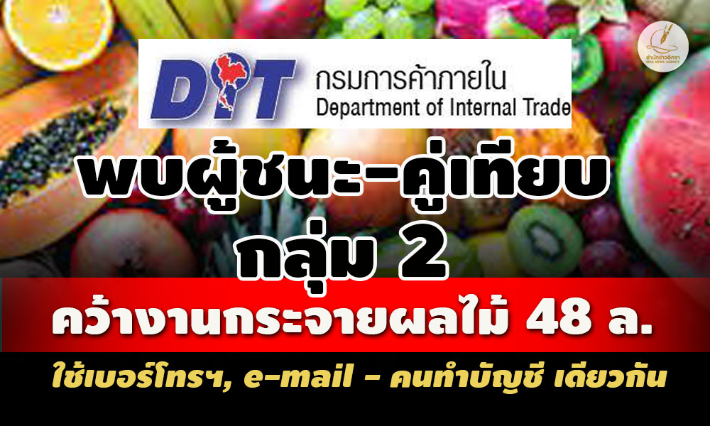- กรมฯค้าภายใน จ้างกระจายผลไม้45.9 ล.'ผู้ชนะ-คู่เทียบ' ใช้คนทำบัญชี-เบอร์โทรฯ,e-mail เดียวกัน