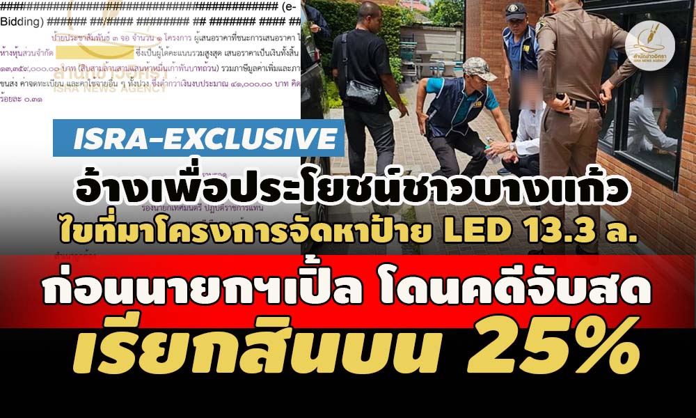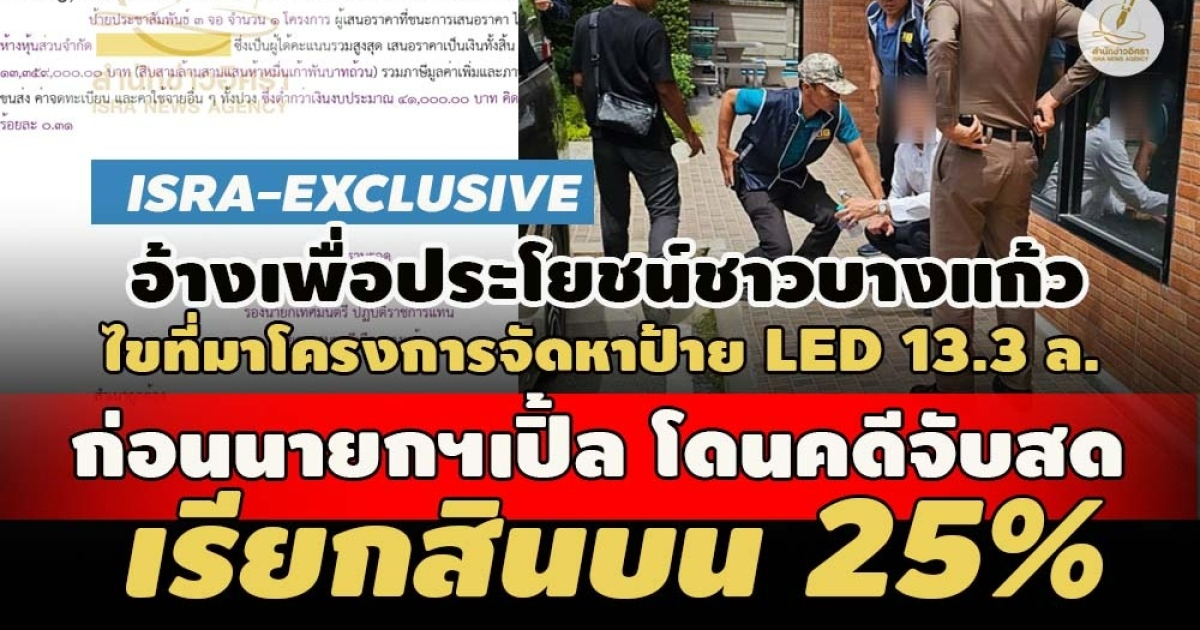 เหล่านี้ เป็นข้อมูลรายละเอียดเบื้องต้น เกี่ยวกับโครงการจัดหาป้ายประชาสัมพันธ์ LED จำนวน 3 จอ วงเงินตามสัญญา 13,359,000 บาท ของ เทศบาลเมืองบางแก้ว ที่ถูกสอบสวนพบว่า นายณัฐพงศ์ แสงสุวรรณ นายกเทศมนตรีเมืองบางแก้ว จ.สมุทรปราการ มีพฤติการณ์เรียกรับเงินสินบนผู้ประกอบการ เป็นเงินสูงถึง 3,121,261 บาท หรือคิดเป็นจำนวน 25% ของวงเงินตามสัญญา เพื่อแลกกับหนังสือคู่สัญญาที่นายกเทศมนตรีจะต้องเป็นผู้ลงนาม ที่ปรากฏเป็นข่าวดังอยู่ในขณะนี้