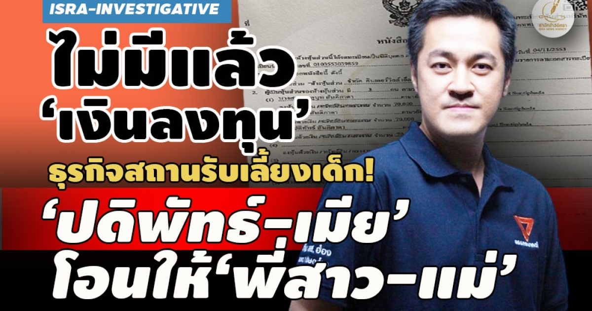 • ไม่มีแล้ว ‘เงินลงทุน’ ธุรกิจสถานรับเลี้ยงเด็ก! ‘ปดิพัทธ์-เมีย’ โอนให้‘พี่สาว-แม่’